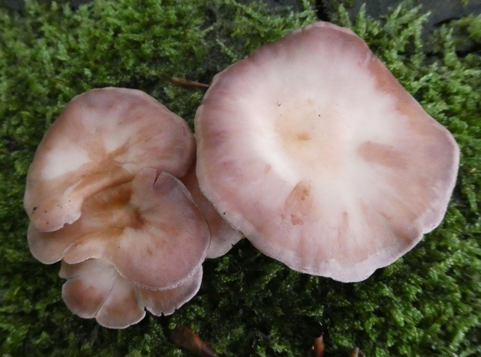 Auf einem bemoosten Buchenstumpf Laubholzknäuelinge Panus conchatus :
