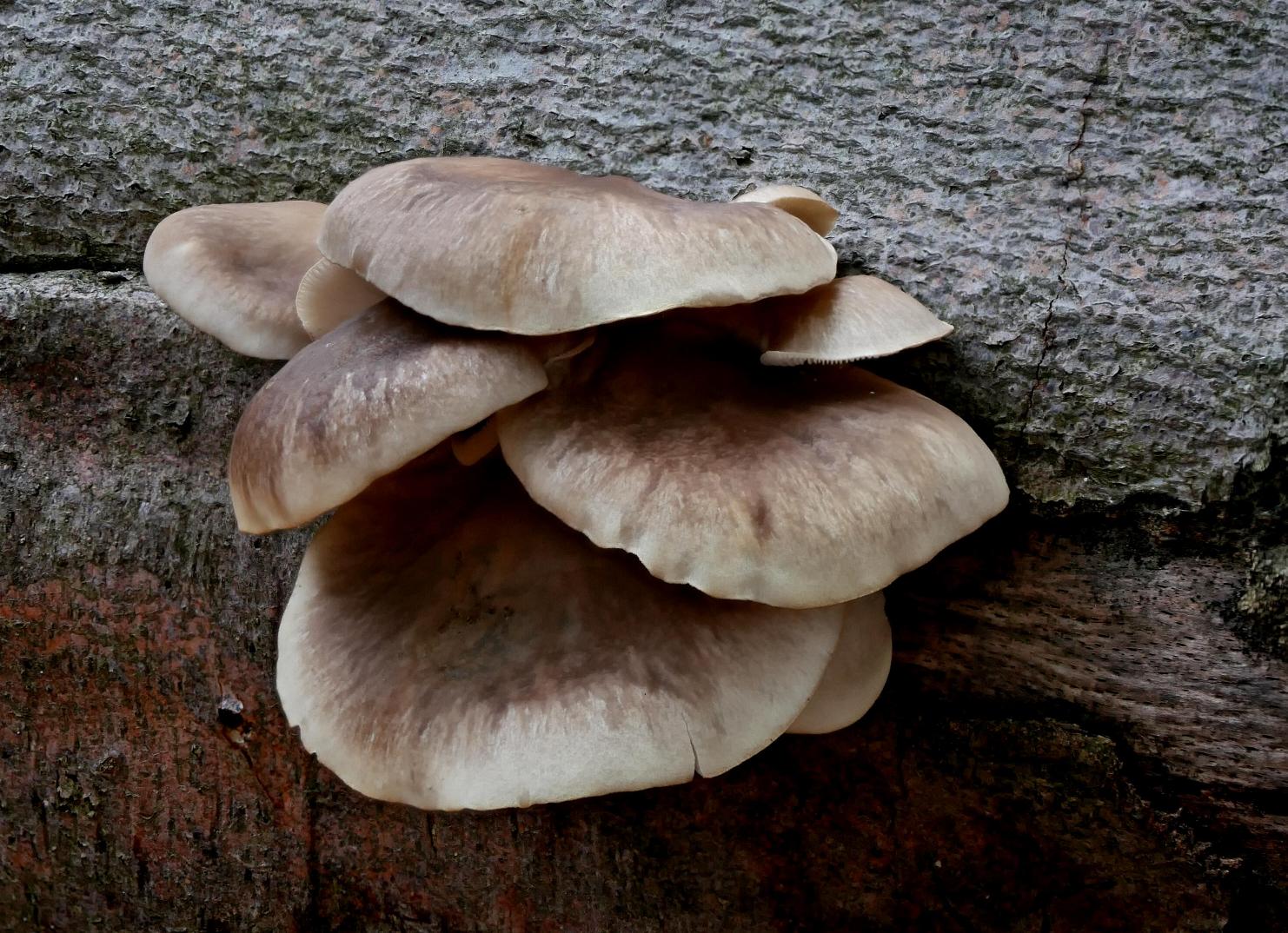 Und an einem liegenden Buchenstamm auch Austernseitlinge Pleurotus ostreatus :