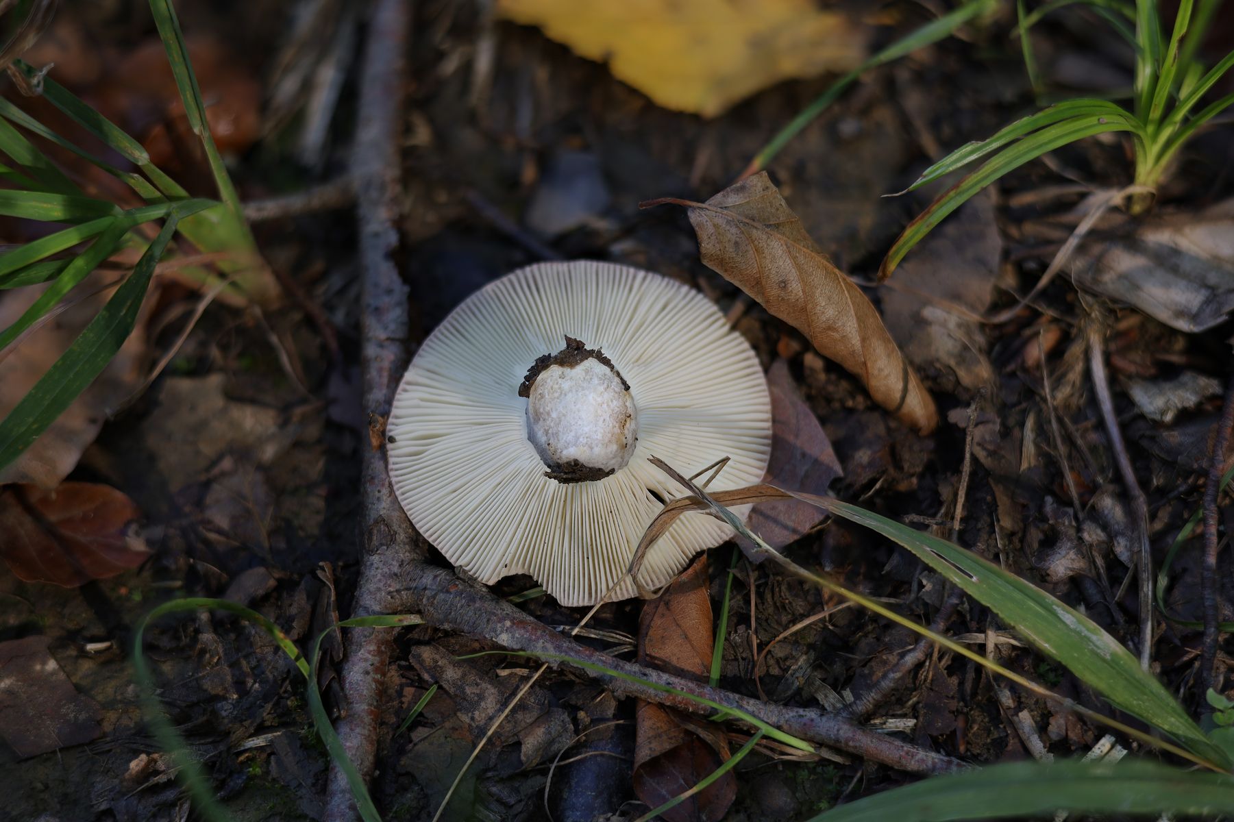 1. Täubling mit grauen Stiel und hellen Lamellen. Sofortige Reaktion in Hut Stiel und Lamellen mit Guajak. Gefunden Bei Buche/Eiche.