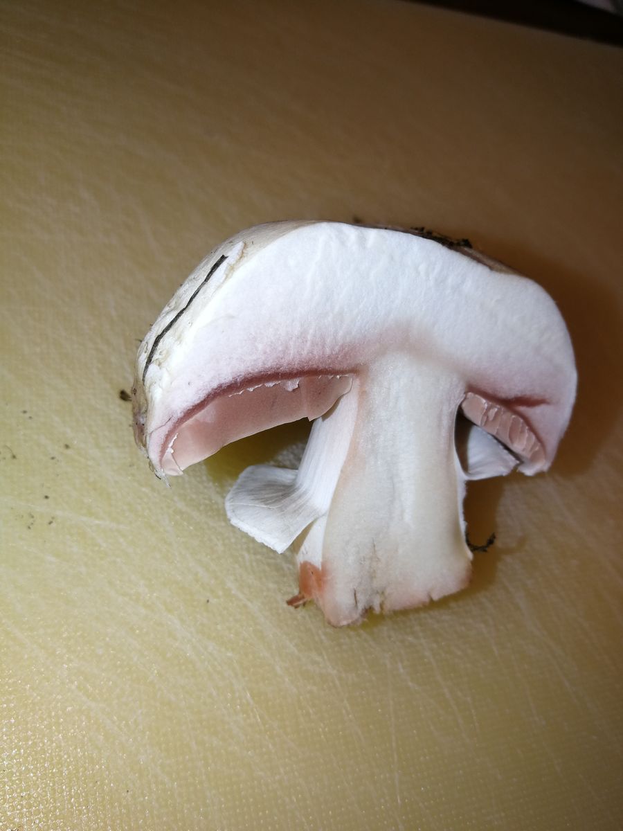 ich habe heute auf der Wiese neben ein paar Wiesenchampignons diese knolligen Champignons gefunden - mir viel sofort der sehr ausgeprägte Ring und die rote Farbe im Schnitt auf.