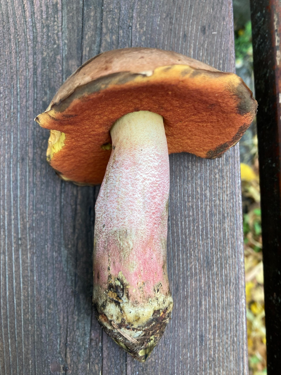 Was mich wundert: der deutlich hellere Stiel und das schwächere Blauen