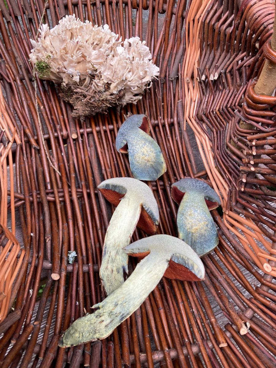 Was mich wundert: der deutlich hellere Stiel und das schwächere Blauen