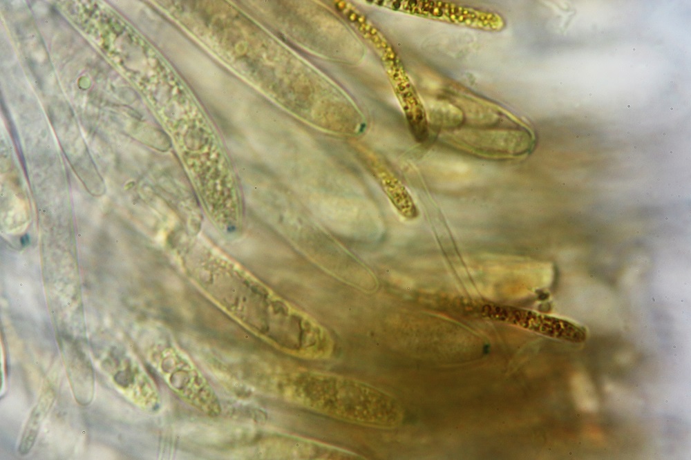Die Hymenoscyphus caudatus ist für mich ein Aggregat und es werden sich sicherlich mehrere Arten drunter verstecken, weshalb ich die Unterscheidungen von Zotto übernehme H. caudatus Haken +/-, nicht septiert / einfach septiert, setulae vorhanden / nicht vorhanden und diesem Fall füge ich auch das Substrat hinzu.
