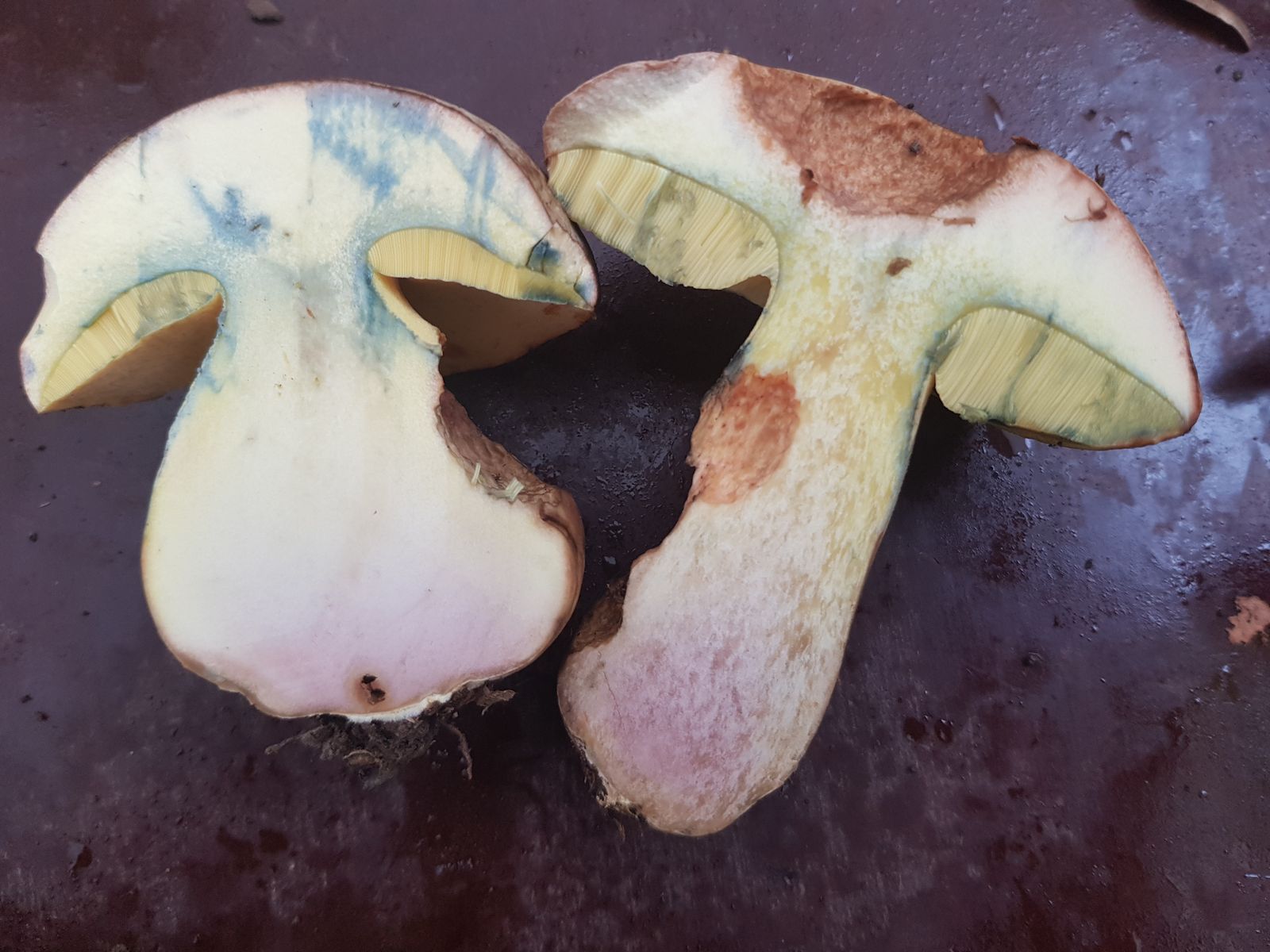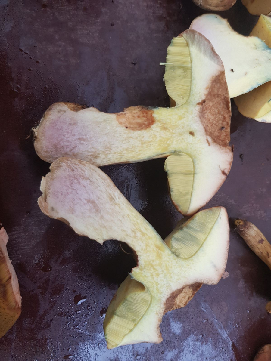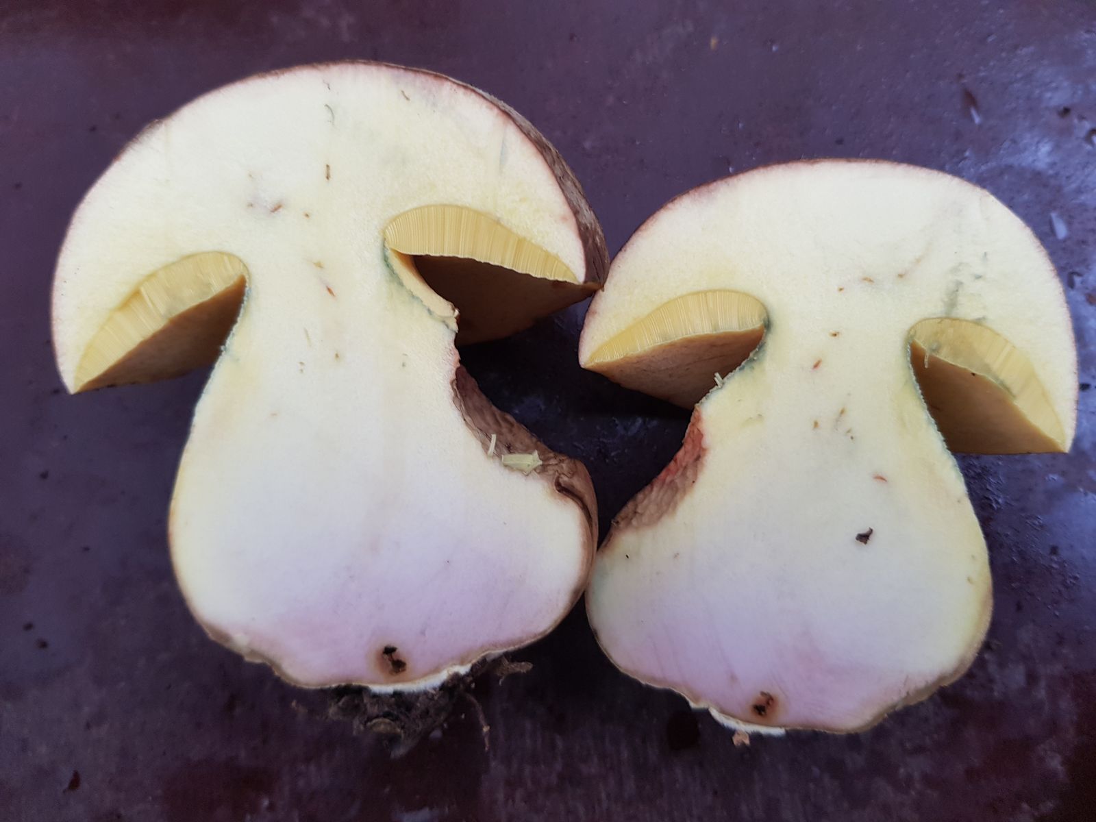 Heute wurden mir aus dem gleichen Gebiet weitere Fruchtkörper zur Pilzberatung vorgelegt, die ich für die gleiche Art halte. Mit der Bestimmung tue ich mich schwer, auch weil ich mich mit Boleten eher selten beschäftige.