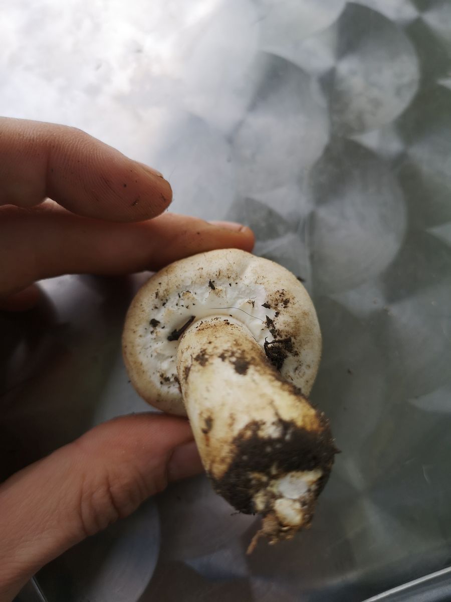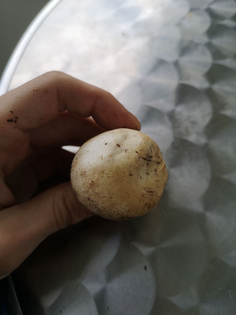 - Beschreibung Hut: Weiß, kugelförmig, nicht glatt, aber auch nicht schuppig. Leicht "rau".