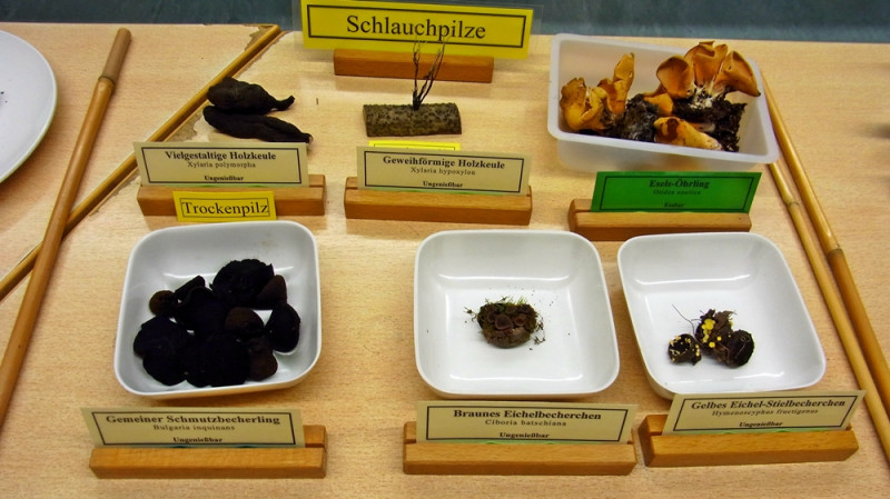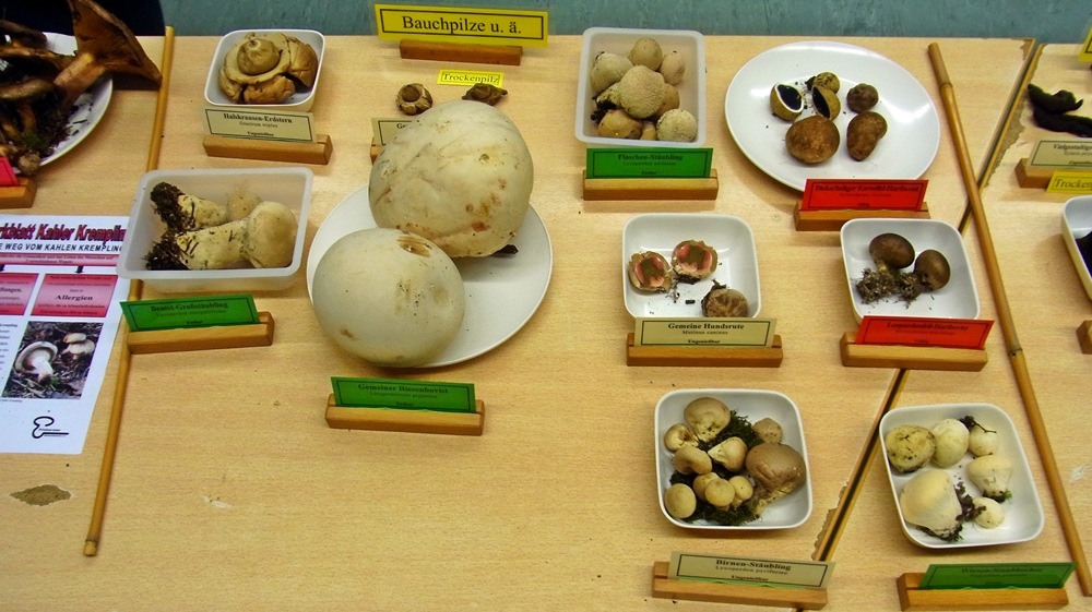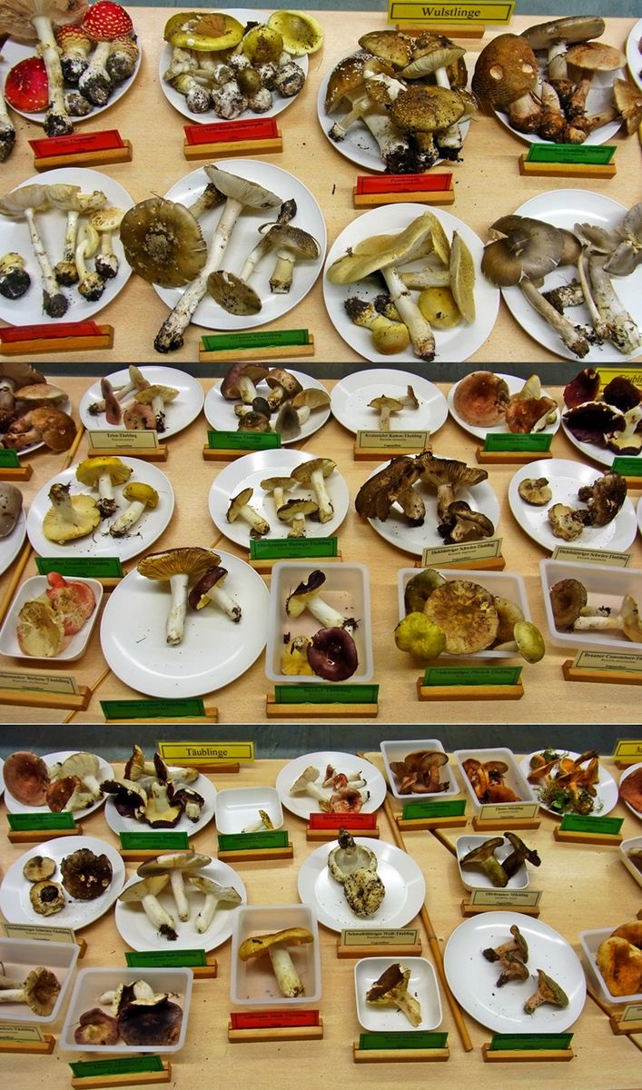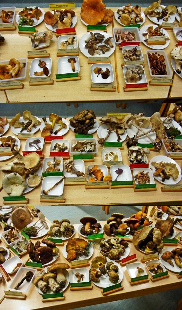 schön eure Pilzausstellung. Ich hab mir gleich die Bambusstäbe zwischen den Gattungen abgeguckt. Wenn wir nächstes Mal ein bisschen Platz haben trennen wir auch. Das macht die Sache übersichtlicher. Auch die Gegenüberstellung Plastiktüte-Sammelkorb ist eine gute Idee.