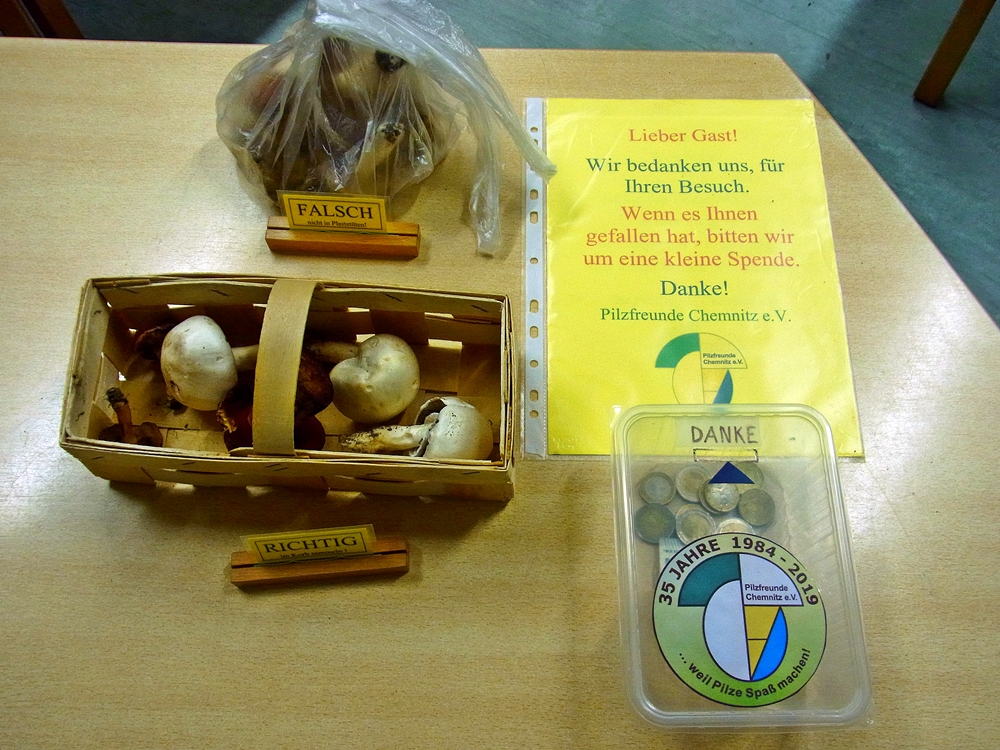 schön eure Pilzausstellung. Ich hab mir gleich die Bambusstäbe zwischen den Gattungen abgeguckt. Wenn wir nächstes Mal ein bisschen Platz haben trennen wir auch. Das macht die Sache übersichtlicher. Auch die Gegenüberstellung Plastiktüte-Sammelkorb ist eine gute Idee.