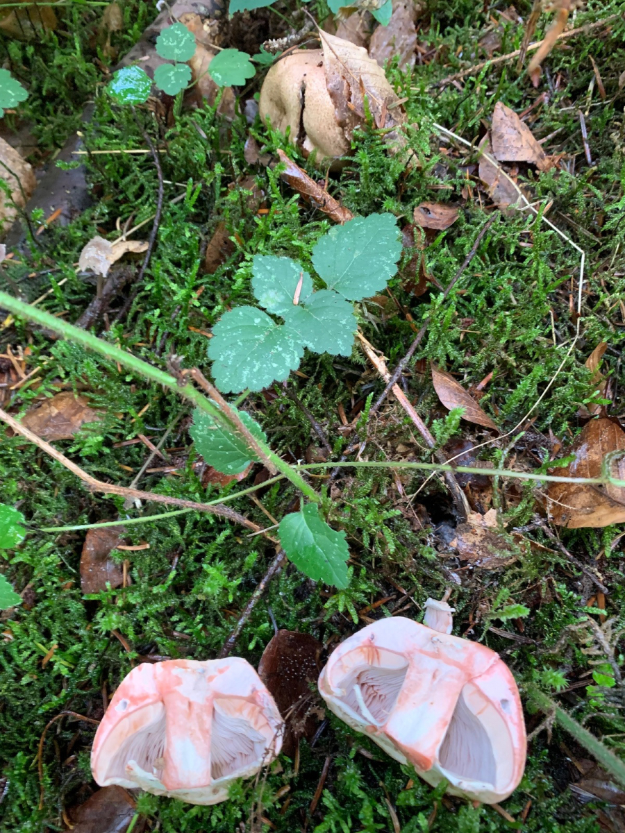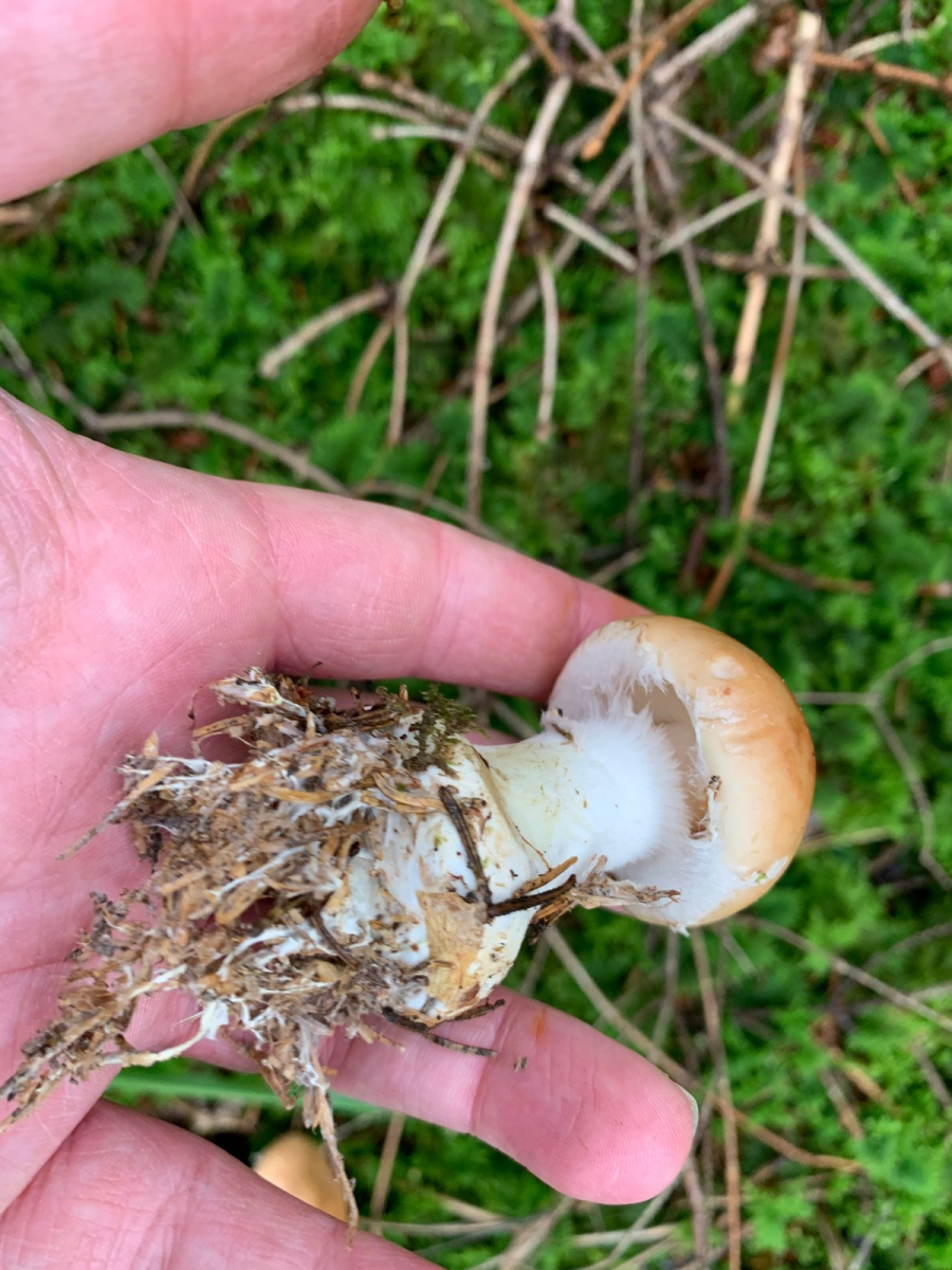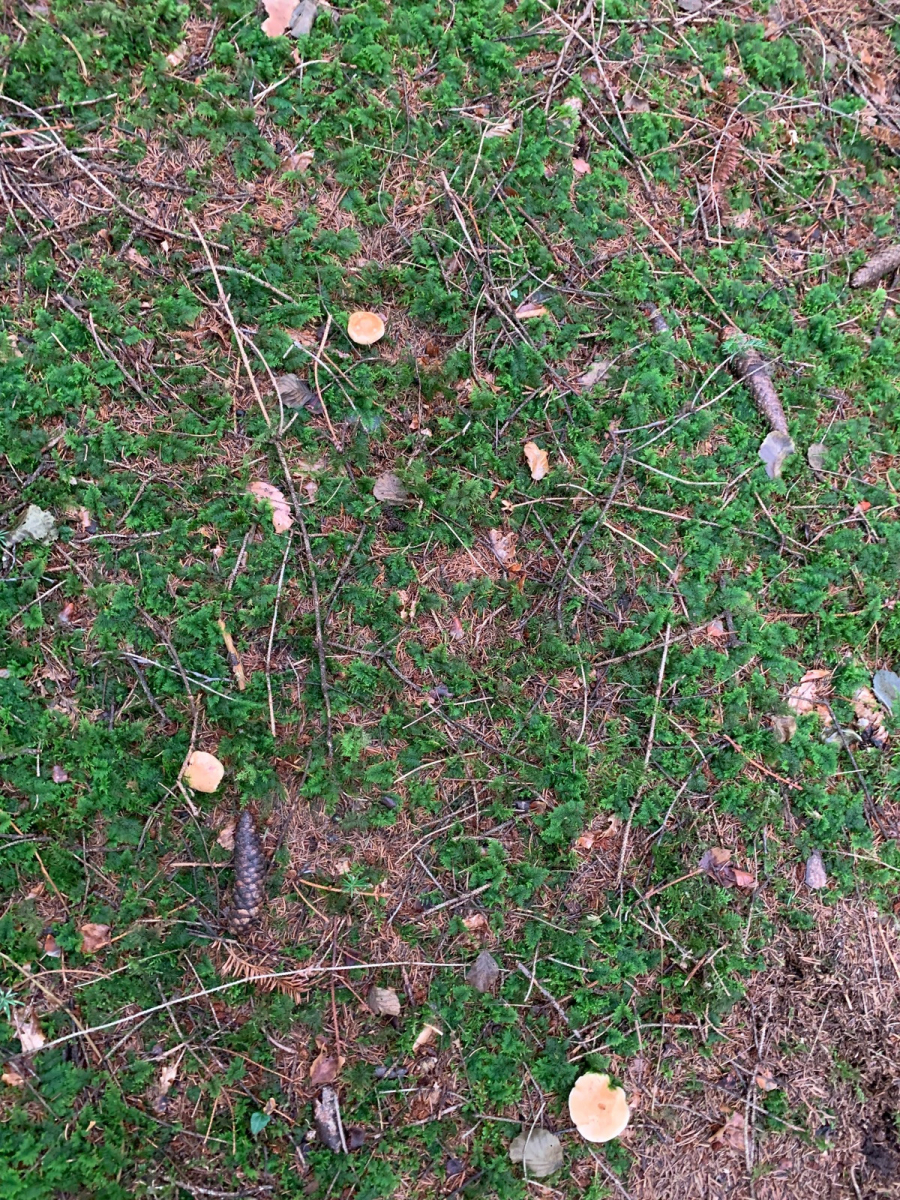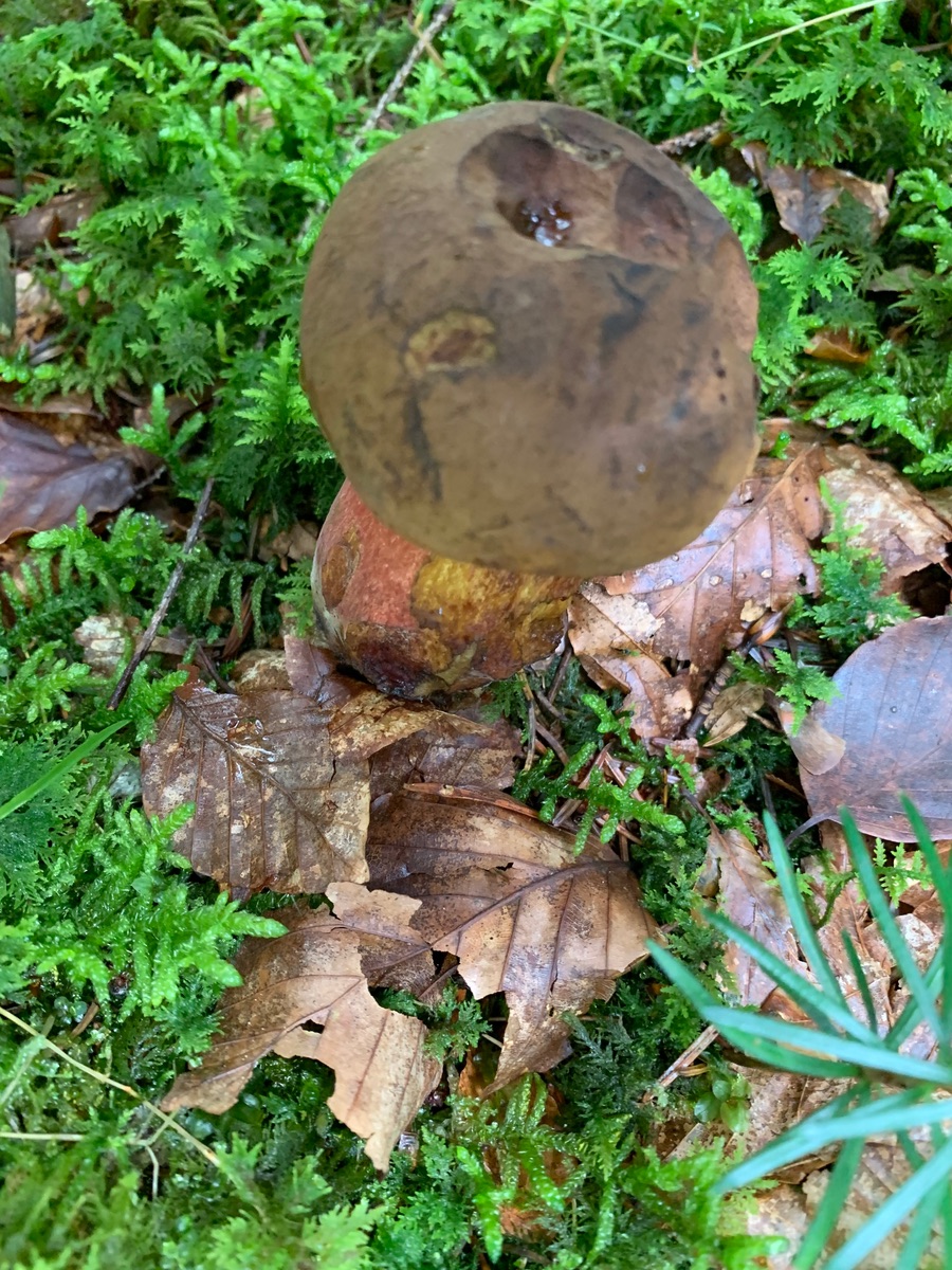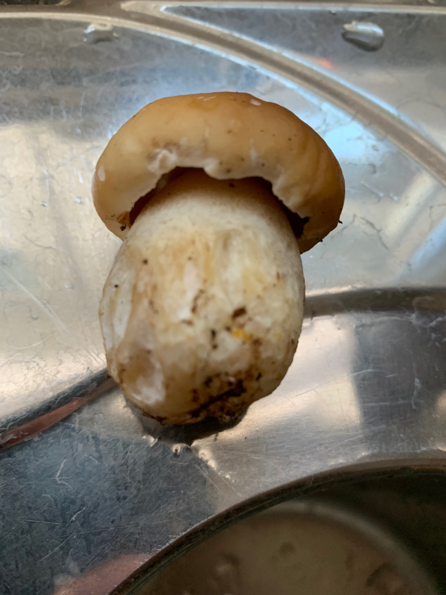fand ich heute eine Stelle an der ich dachte, hier herrscht absoluter Steinpilzalarm. Dutzende, kugelige , hellbraune Knöpfchen drückten sich im Fichten/Tannenwald aus dem Moos. Dann holte ich aber einen raus und es fühlte sich so gar nicht nach Steinpilz an.