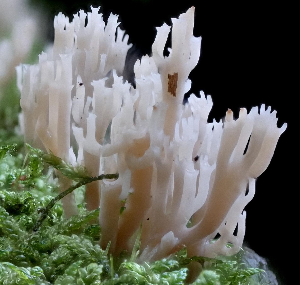 Auf einem bemoosten Baumstamm fand ich gestern diese kleinen korallenförmigen Pilze.