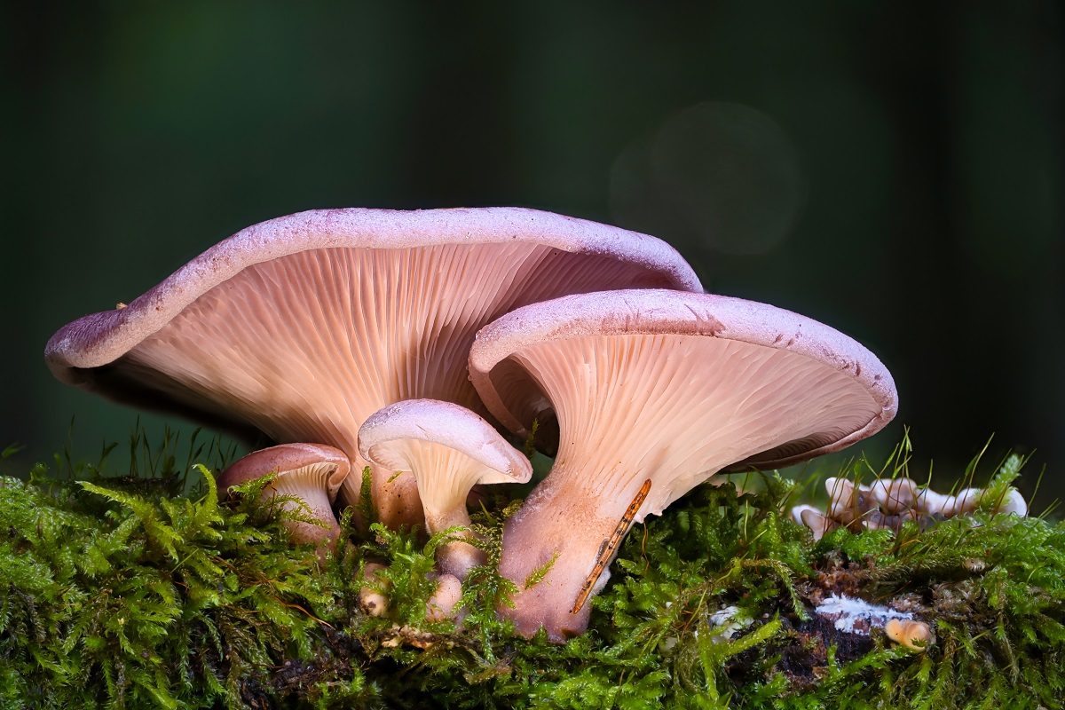 2) evtl. ein Adernseitling. Diese Gruppe wuchs auf einem sehr großen Buchenstumpen. Mir ist sie aufgrund der lila Farbe aufgefallen (vor allem von oben).Das größte Exemplar hatte einen Durchmesser von 7 cm.