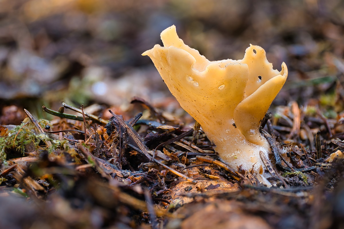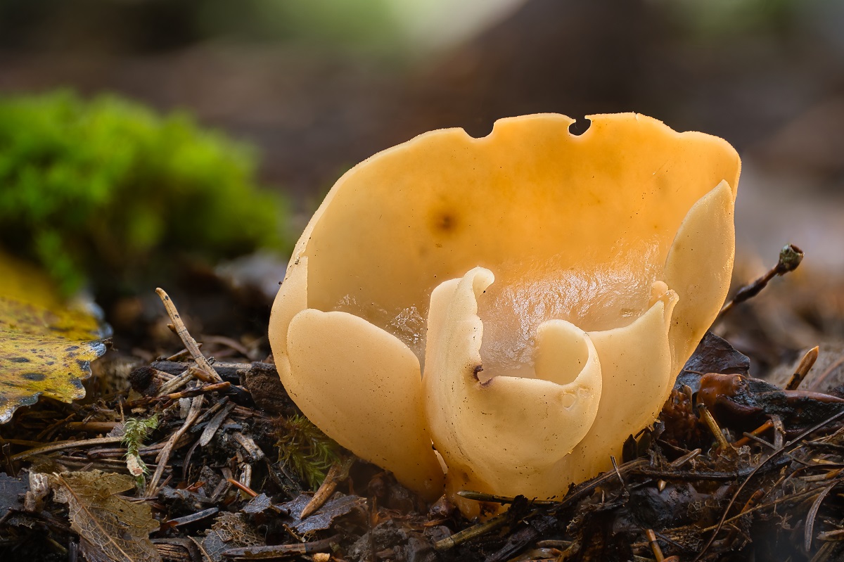 1) Ein Becher - evtl. ein Ausgebreiteter Becherling. Für mich wie nahezu alle Becher nur schwer bestimmbar. Rund um ihn und weiteren Exemplaren wuchsen nur Laubbäume. Einen Geruch konnte ich nicht feststellen. Größe etwa 4cm im Durchmesser. Einige waren geöffnet wie dieser hier, andere geschlossen. Einige wuchsen einzeln, andere zu dritt oder zu viert.
