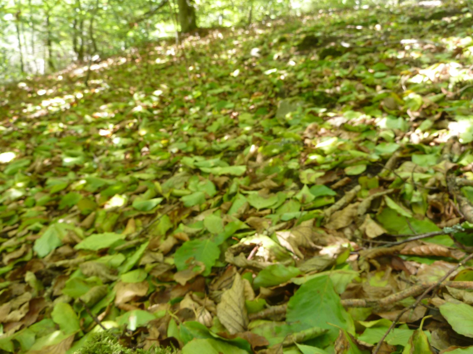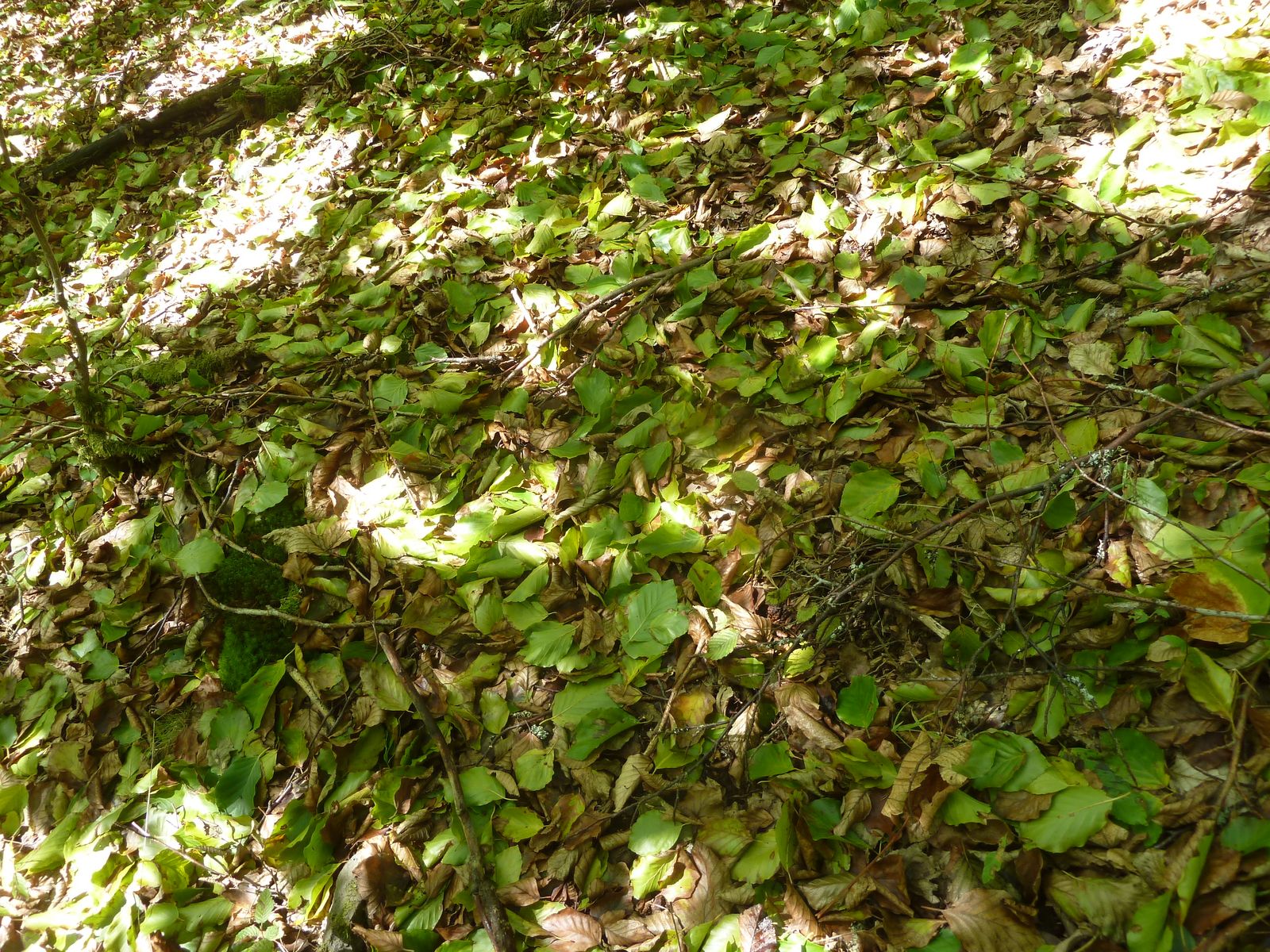 Dass eine Buche im September quietschgrüne Blätter abwirft, habe ich so auch noch nicht gesehen. Trockenstress? Sowas kenne ich nur von Hagelschlag, es gab aber keinen Hagel in den letzten Wochen.