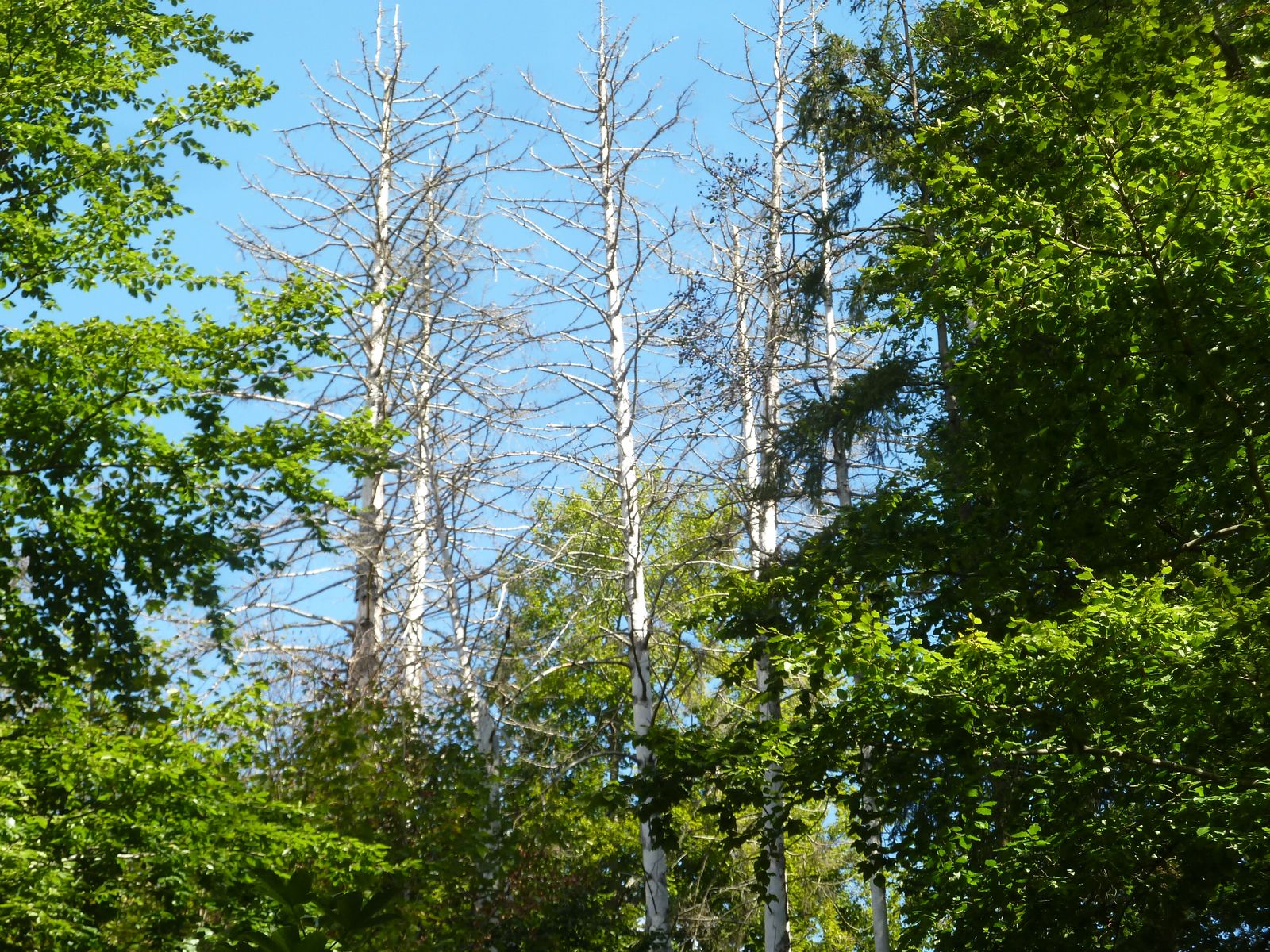 ich hätte niemals gedacht, dass abgestorbene Fichten so aussehen. Woher soll ich das auch wissen. Die sind natürlich auch hin.