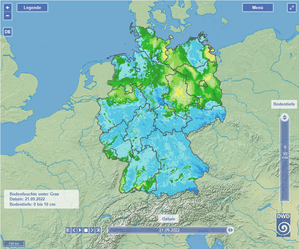 • Also bei mir (Blauer Punkt) gab es in den letzten 2 Wochen ordentlich regen, allerdings gab es 8 Wochen zuvor nicht einen tropfen Niederschlag. Dem entsprechend Trocken ist es bei uns. Leider..