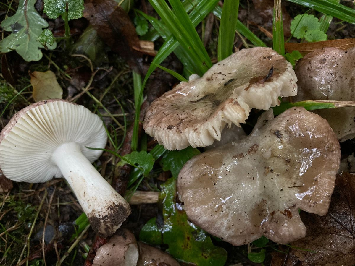 #5 Violetter Reiftäubling Russula azurea - Ein lang ersehnter Fund! Von oben erst für R.turci gehalten, aber durch die milchweißen Lamellen, fehlenden Jodoformgeruch und die schorfig erscheinende Huthaut vor Ort bereits zu erkennen. Was nirgends steht: Die Huthaut ist bei feuchtem Wetter schleimig! Zur Kontrolle Sporenpulverfarbe bestimmt - Weiß Ia.