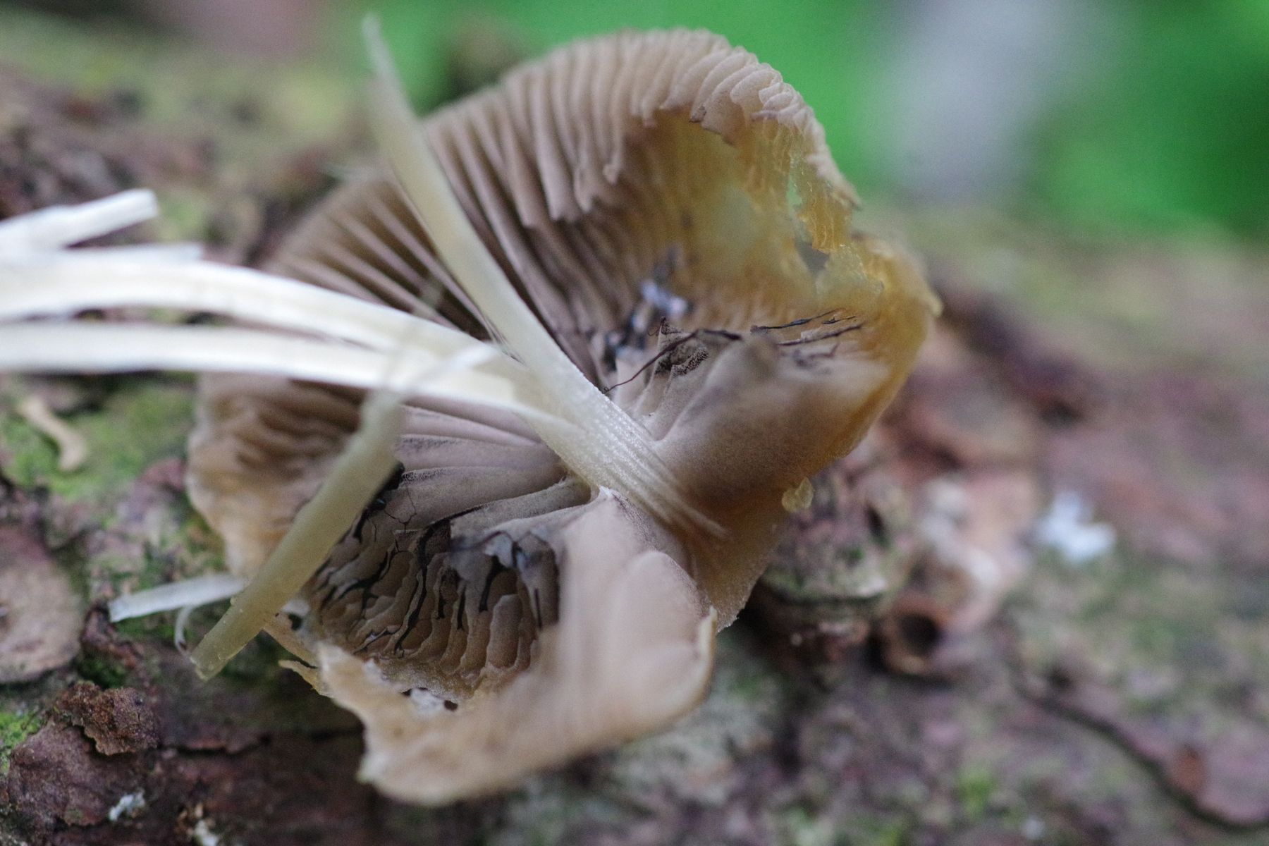aus dem Fichtenwald (mit Kiefer, Eiche, Hasel, Eberesche ...), könnte auch auf organischem Substrat sein, gesehen habe ich aber nichts, stammt dieser mittelgroße Pilz mit Hut bis 5 cm. Der Stiel ist dünn, so um die 3-4 mm, faserig und hohl, weißlich. Der erste Gedanke ging Richtung Mycena, aber mit der Sporenpulverfarbe dunkelbraun mit violettem Stich gehen mir die Ideen aus - eventuell Richtung Psilocybe? Geruch ist mir keiner aufgefallen, Geschmack habe ich nicht probiert.