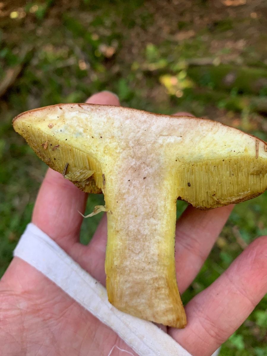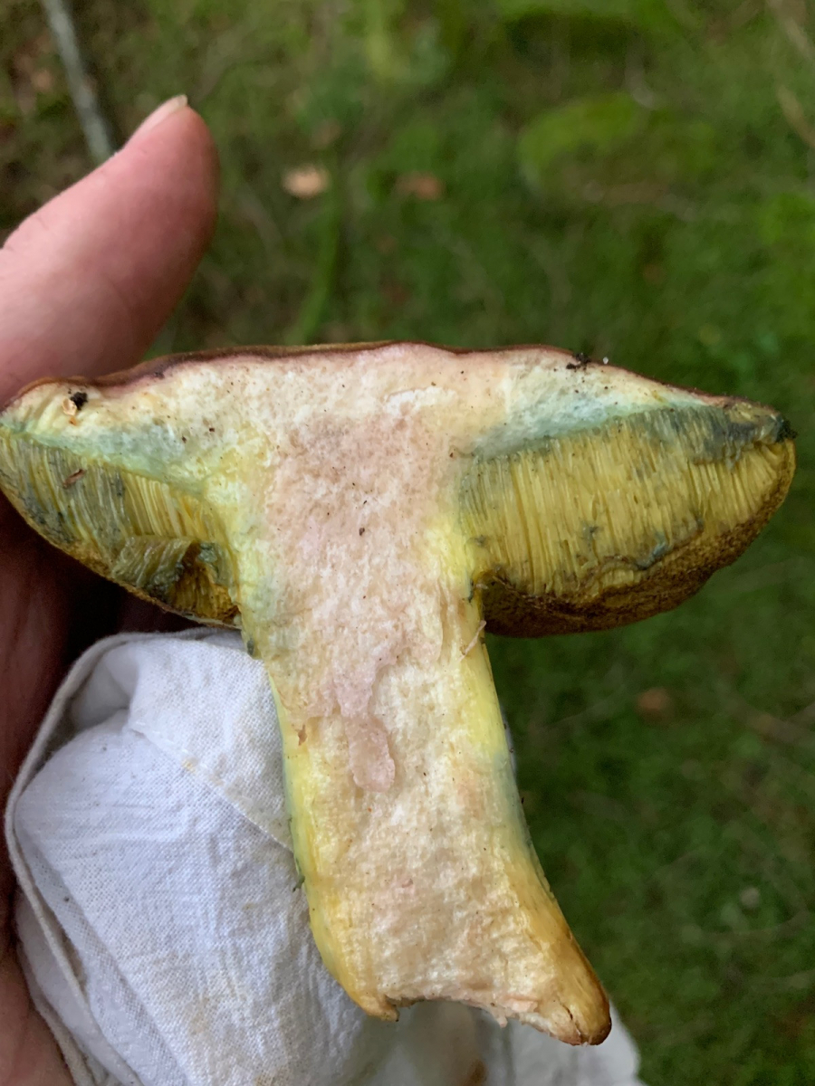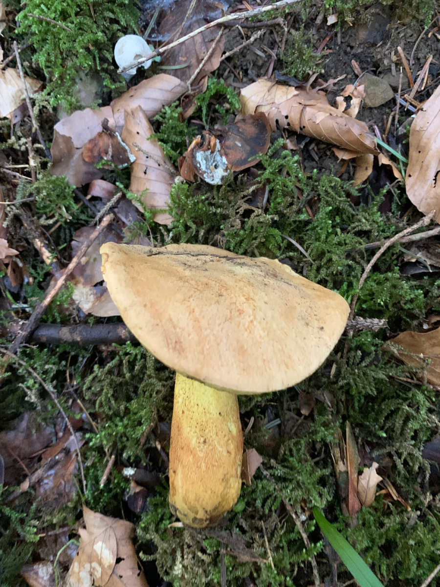 Ich habe heute auf der Ostalb diesen Röhrling gefunden, unter eingestreuter Buche im etwas wärmeren Fichten/Tannenwald, eine Birke war aber auch in der Nähe. Das Fleisch bläut nicht, sondern rötet sehr langsam, Druckstellen am Stiel blauen. An der Stielspitze ist ein feines gelbes Netz, er riecht schwach und schmeckt mild.