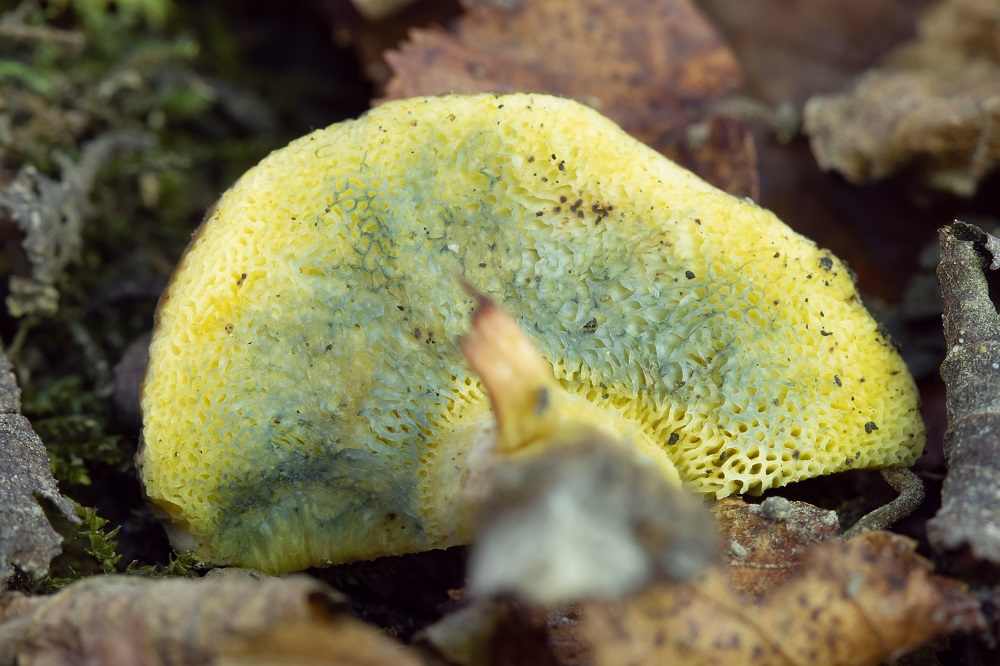 Auf Druck liefen nur die Röhren blau an, ansonsten blieb der Pilz unverändert bei Verletzung.