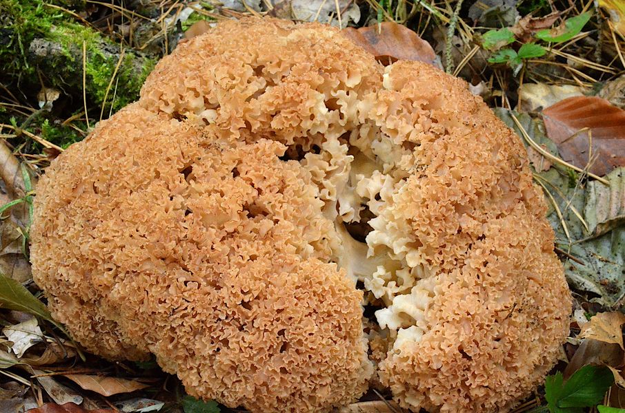 ich meine heute eine Krause Glucke gefunden zu haben. Verwechslung könnte nach meiner Einschätzung nur mit der Breiblättrigen möglich sein. Der Fruchtkörper wuchs am Fuße eines Stumpfes, den ich nicht eindeutig als Kiefer identifizieren konnte. Aus der Mitte des Stumpfes wuchsen einige ganz junge Ahorn-Schößlinge, die ich als solche interpretiert habe und nicht als Stockausschlag. Ich habe den Pilz stehen gelassen, weil es mein Erstfund war, er mir nicht mehr so frisch erschien und ziemlich klein war. Ein kleines Stück habe ich abgeschnitten und meine eindeutig einen leichten Walnußgeruch wahrgenommen zu haben. Waschküche oder Putzlappen definitiv nicht. Kann Krause Glucke hinkommen? Danke für's Mitdenken.