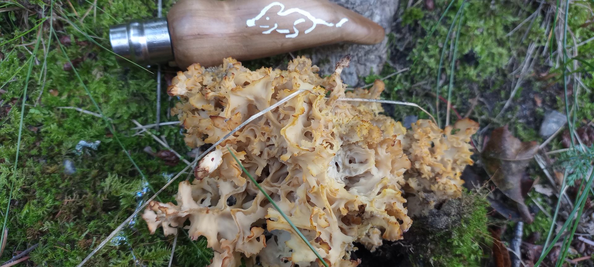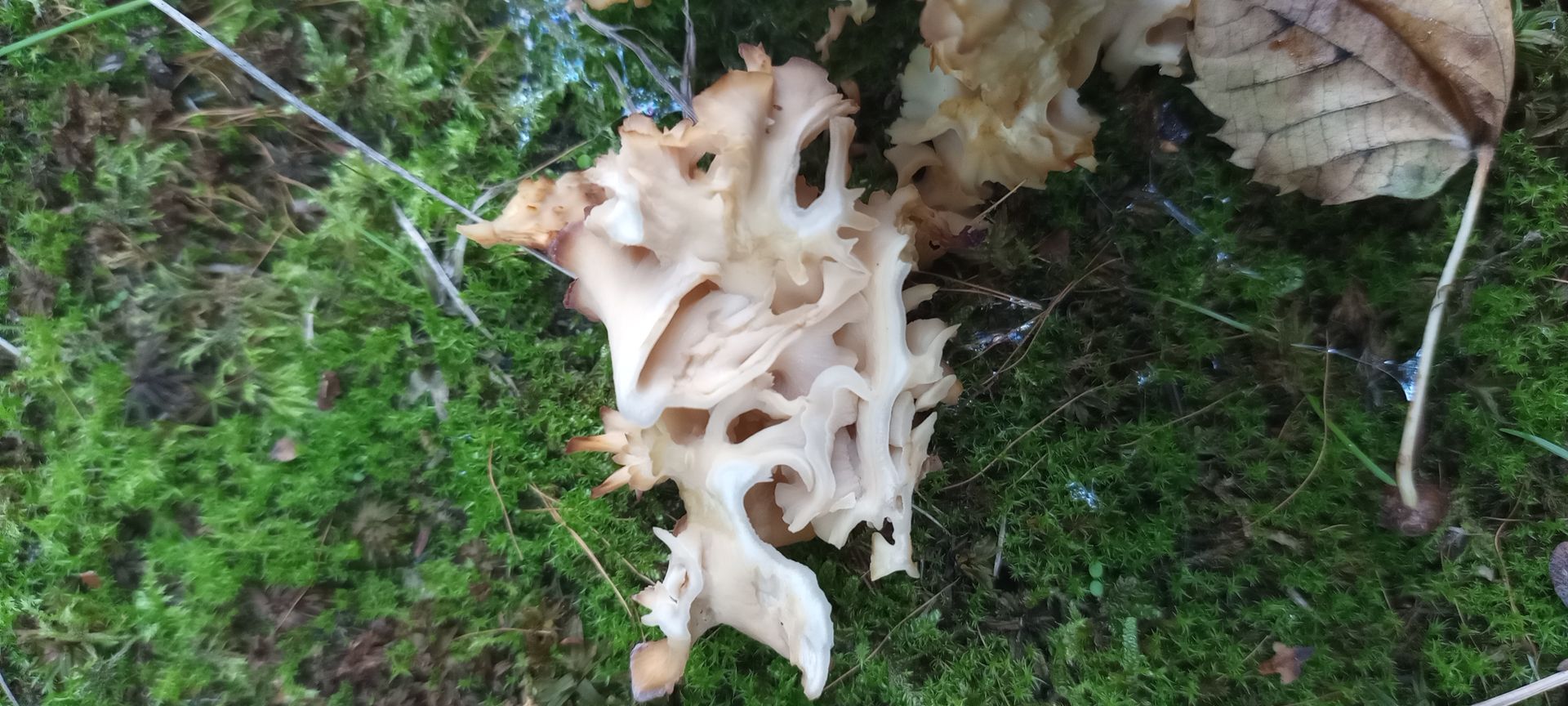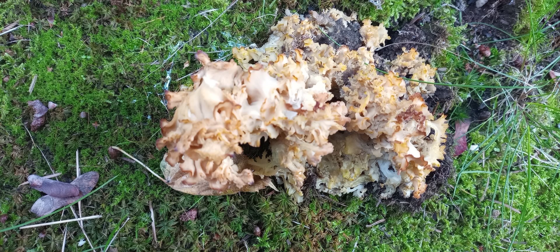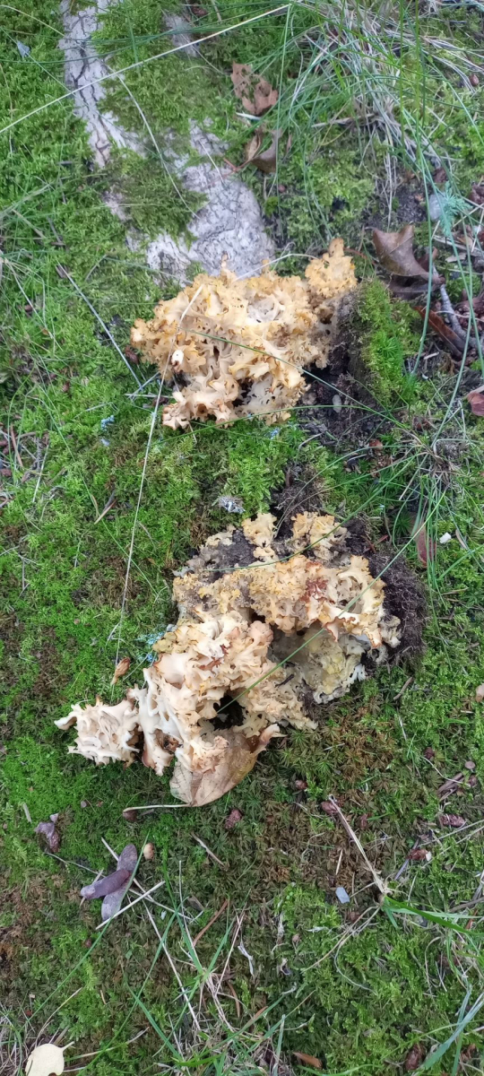 ich meine heute eine Krause Glucke gefunden zu haben. Verwechslung könnte nach meiner Einschätzung nur mit der Breiblättrigen möglich sein. Der Fruchtkörper wuchs am Fuße eines Stumpfes, den ich nicht eindeutig als Kiefer identifizieren konnte. Aus der Mitte des Stumpfes wuchsen einige ganz junge Ahorn-Schößlinge, die ich als solche interpretiert habe und nicht als Stockausschlag. Ich habe den Pilz stehen gelassen, weil es mein Erstfund war, er mir nicht mehr so frisch erschien und ziemlich klein war. Ein kleines Stück habe ich abgeschnitten und meine eindeutig einen leichten Walnußgeruch wahrgenommen zu haben. Waschküche oder Putzlappen definitiv nicht. Kann Krause Glucke hinkommen? Danke für's Mitdenken.