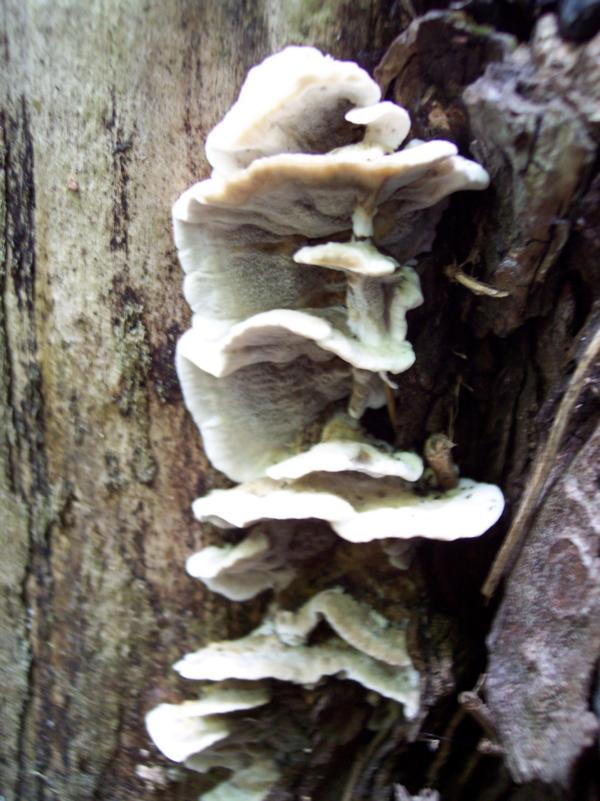 Pilz 1: Mit dieser Seite von Vezi komme ich auf den Lederartigen Fältling (Meruliopsis corium) aber bei Gerhardt sieht der ganz anders aus. Ich kenne ihn auch nur gelb. Die Aufnahmen stammen von drei verschiedenen Orten, ich vermute jedoch es handelt sich um die gleiche Art. Das Substrat auf dem zweiten Bild ist glaube ich Eiche, die anderen weiß ich nicht mehr. :shy: Das Substrat dürfte hier Eiche sein. Die Fruchtkörper sind ziemlich weich und besitzen einen weißen Rand, was zur Mitte hin ins Grau übergeht, auf der Ober- als auch auf der Unterseite.
