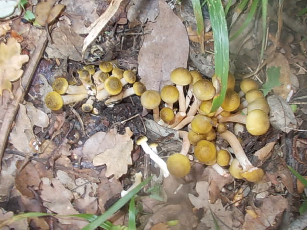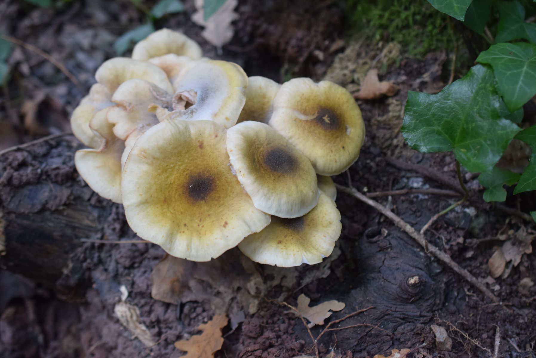 Beim einen vermute ich den honiggelben Hallimasch, beim anderen eine Art Schüppling.