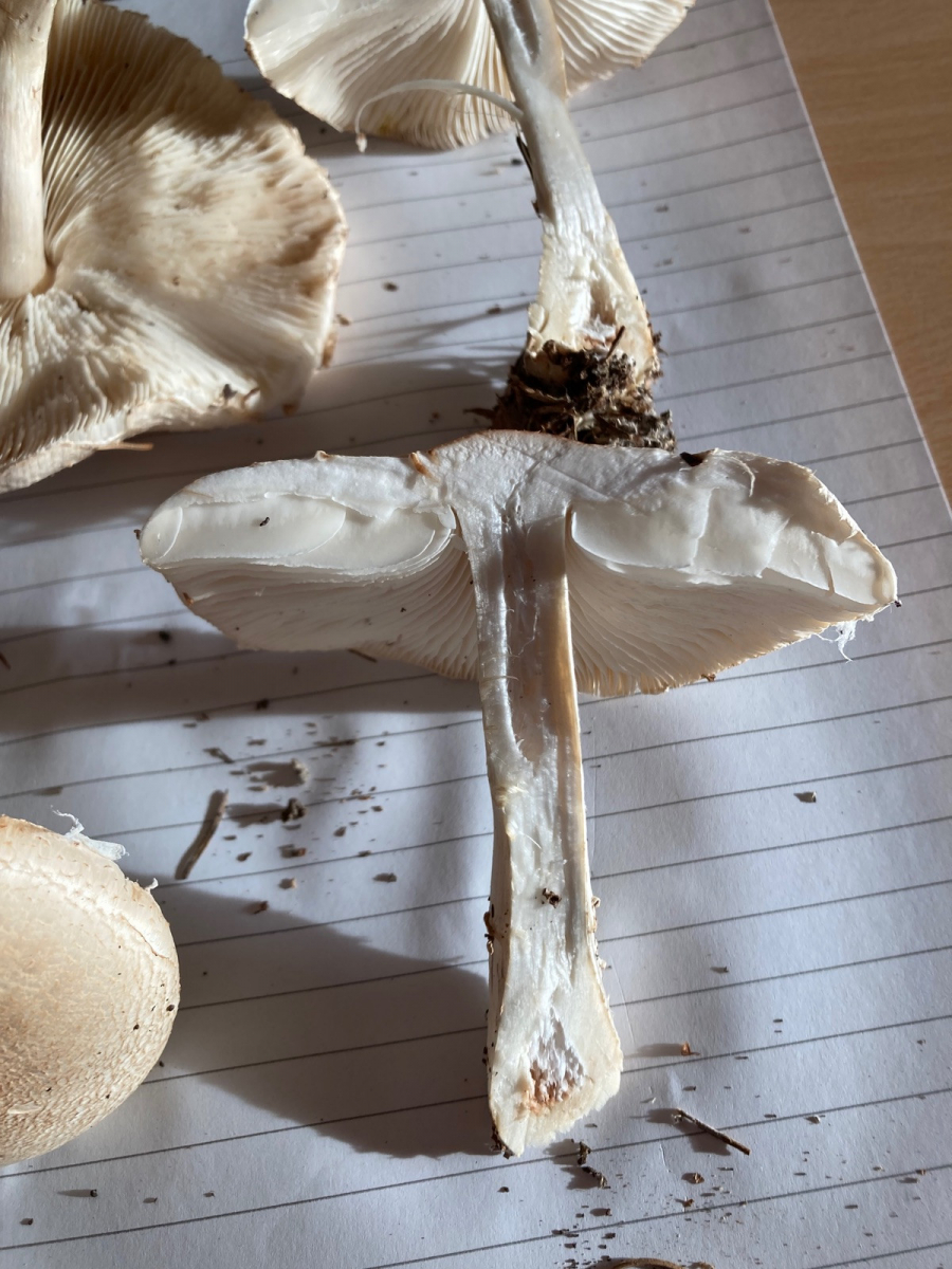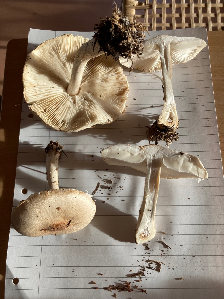 Lepiota erminea (alba) würde ich eher ausschließen wollen. Der besiedelt Magerrasen und Sandtrockenrasen, ist also kein Streuzersetzer. Die hier scheinen auch ziemlcih mächtig zu sein, oder? Wenn das ein DIN-A-4 Blatt ist, auf dem die liegen, ist das schon weit jenseits von allem, was ich an Größe bei Lepiota erminea bisher gesehen habe - auch wenn die schon für Schirmlinge recht groß werden können.LG; Pablo.