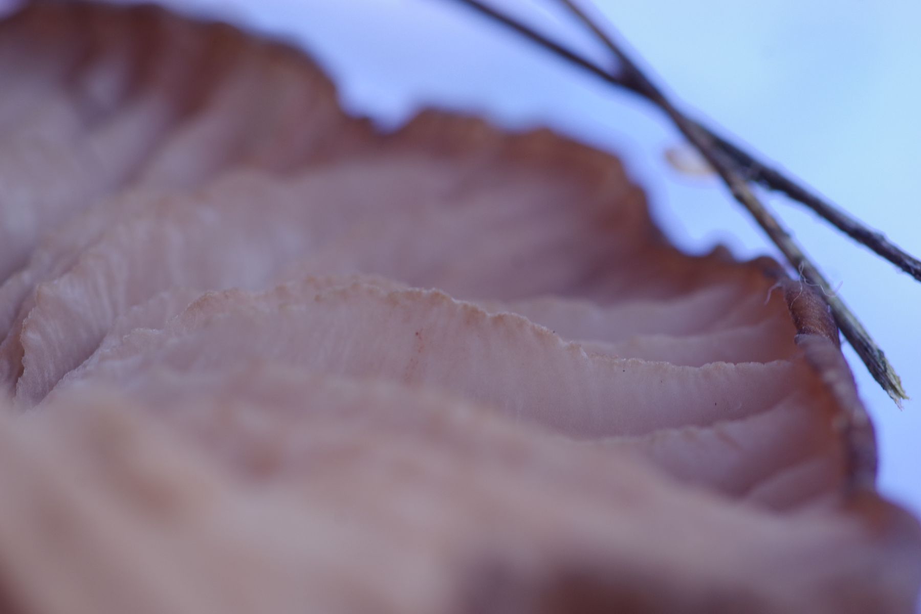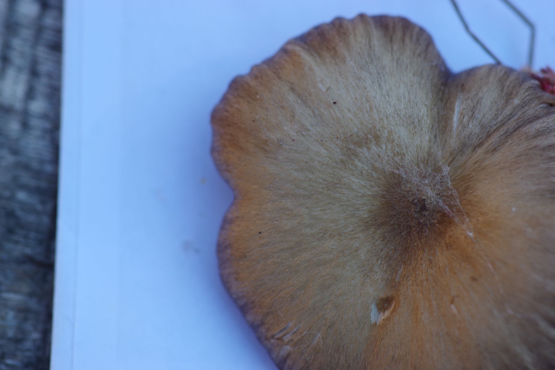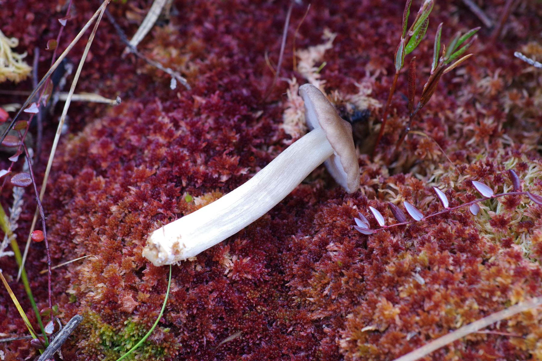 aus dem Hochmoor, in Toorfmoos wachsend, stammt dieser bis zu 6 cm Hutdurchmesser große Pilz. Jung dunkelgrau, beim Wachsen heller werdend, faserig, mit dunkler Kuppe in der Hutmitte, Huthaut etwas umgekrempelt. Lamellen buchtig angewachsen, unregelmäßig gesägt und faserig aussehend. Stiel hohl, faserig. Zum Absporen ausgelegt ...