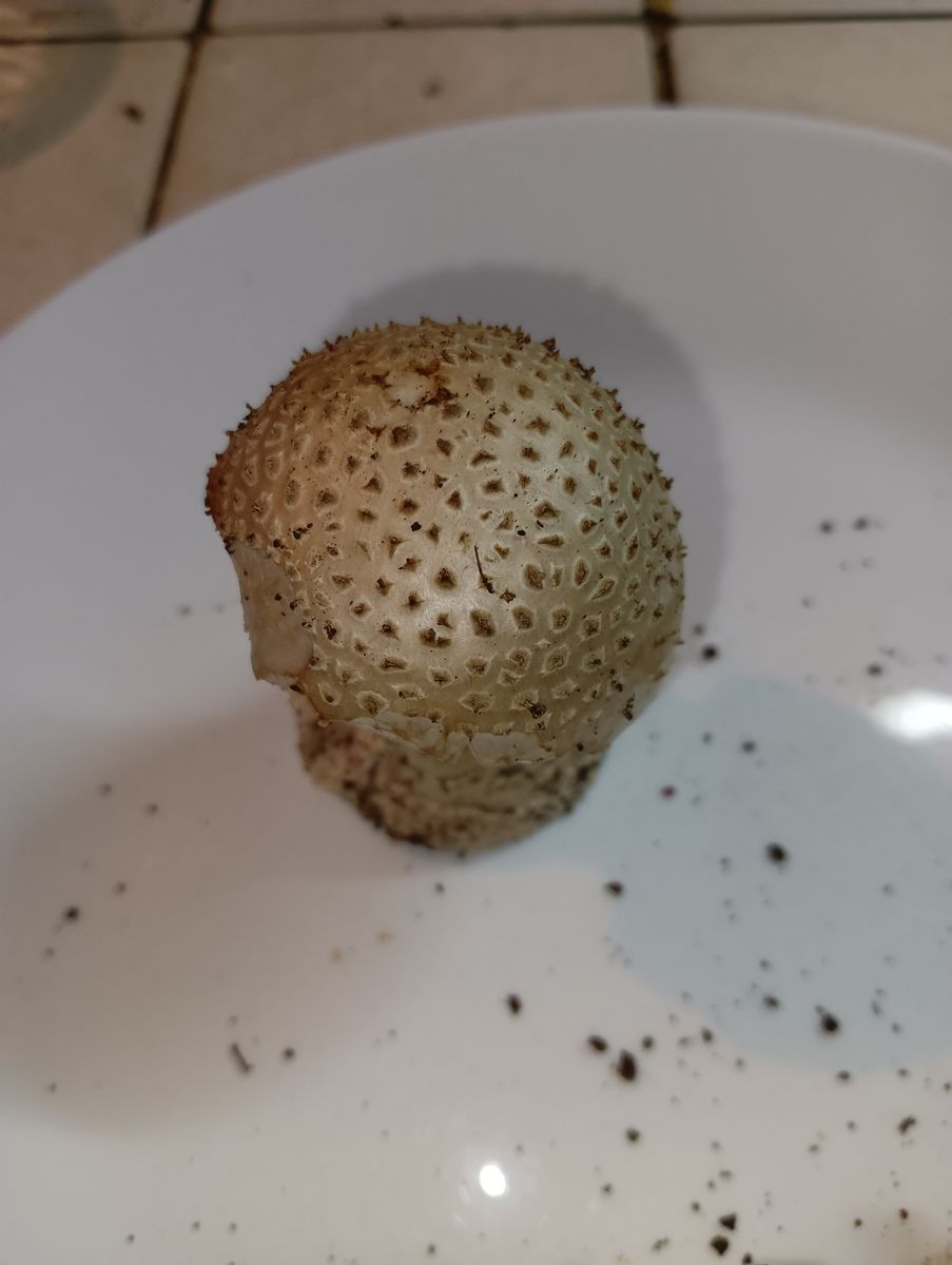 Ich bitte nochmal um Bestimmungshilfe, dieser kleine knollige Pilz ist mir heute am Rand eines Laubwaldes auf einer Kuh-Koppel aufgefallen...