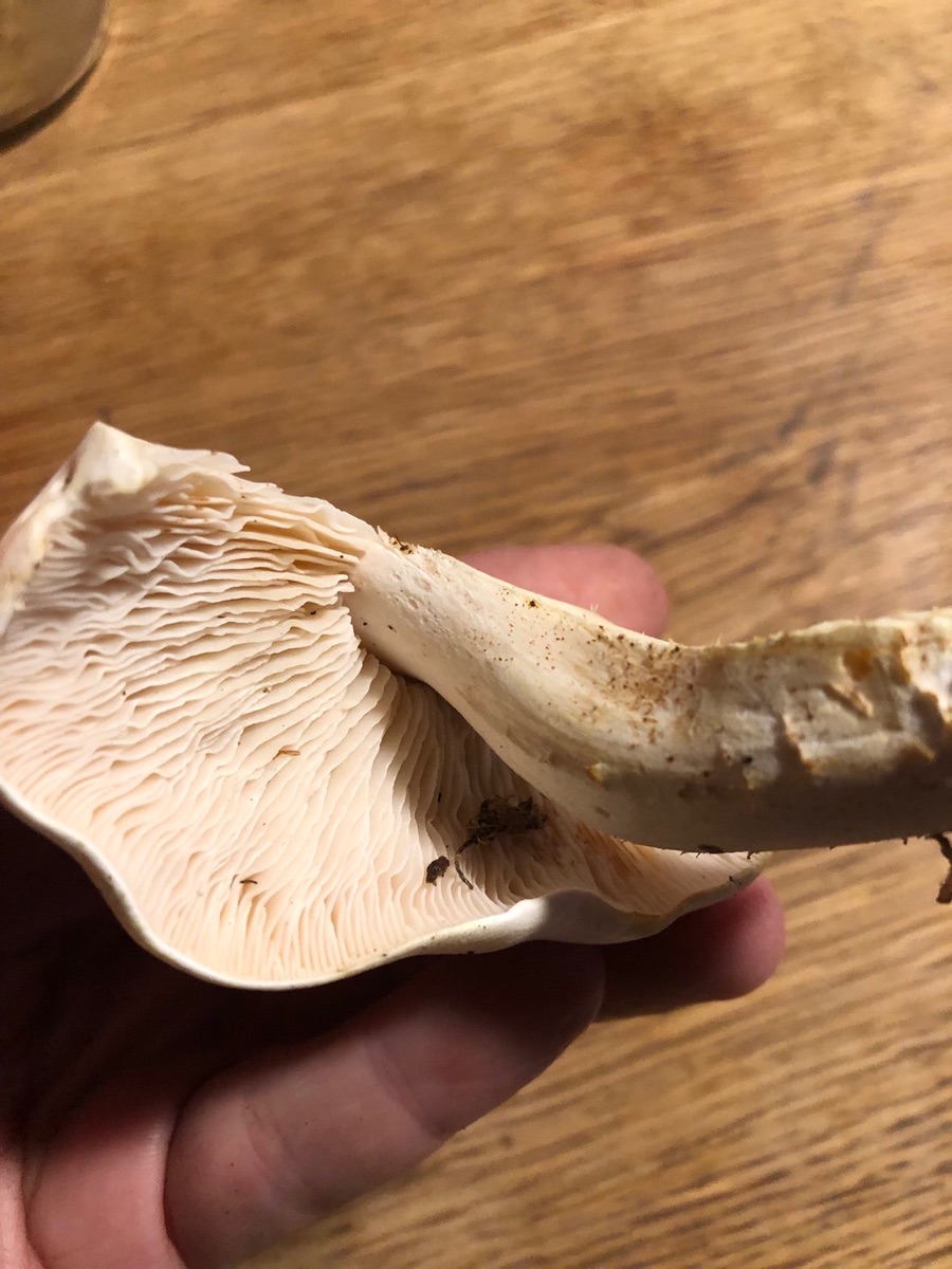 zu Lepista passt die Stielbasis ned so gut mMn. Nicht knollig und ohne den lepista-typischen Myzelfilz. Aber warten wir mal auf den Sporenabwurf…