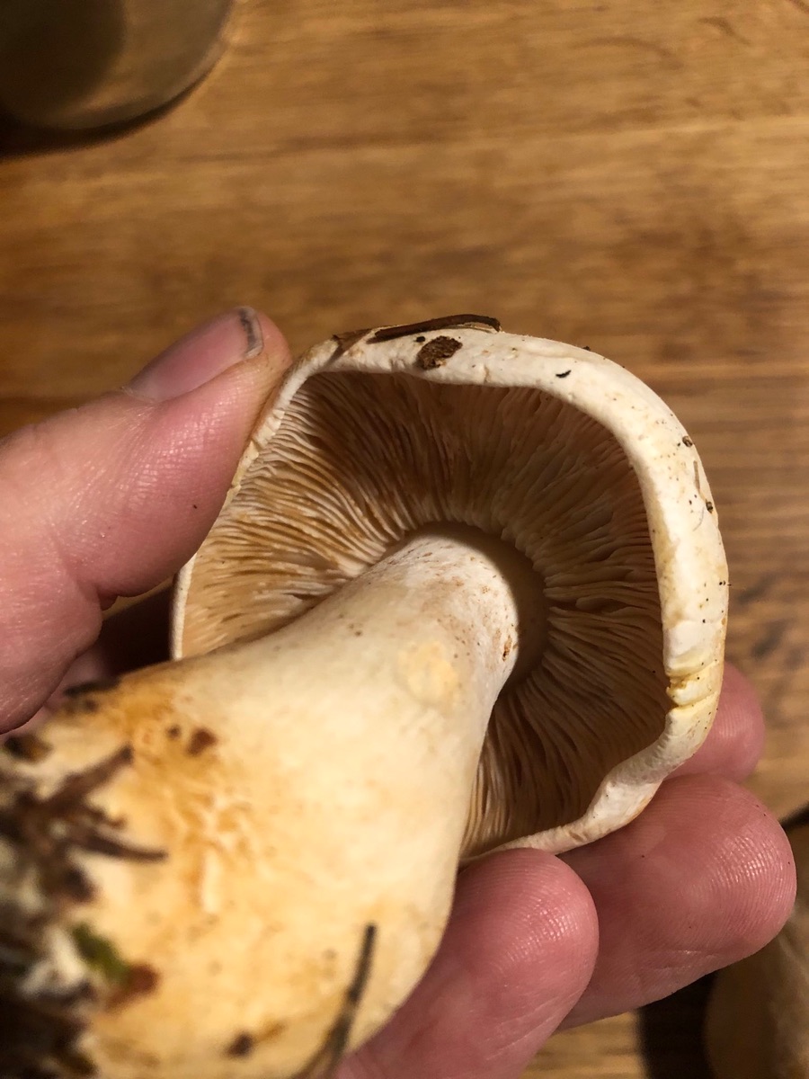 an Tricholoma hatt ich auch gedacht, aber dann eher wieder verworfen wegen des fehlenden Burggrabens und der alt dunklen Lamellen. Aber gut möglich, dass du da Recht hast mit der Sporenpulverfarbe. Und ja, es war ein Mischwald, das hat sie mir falsch erzählt.