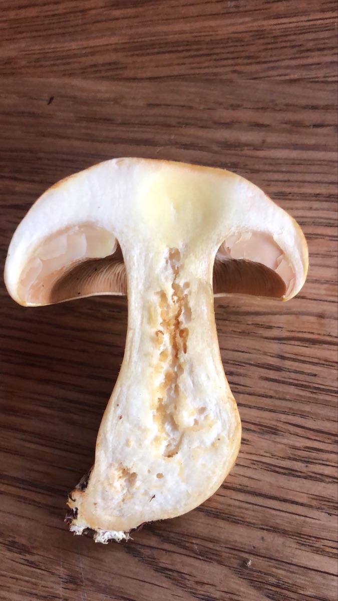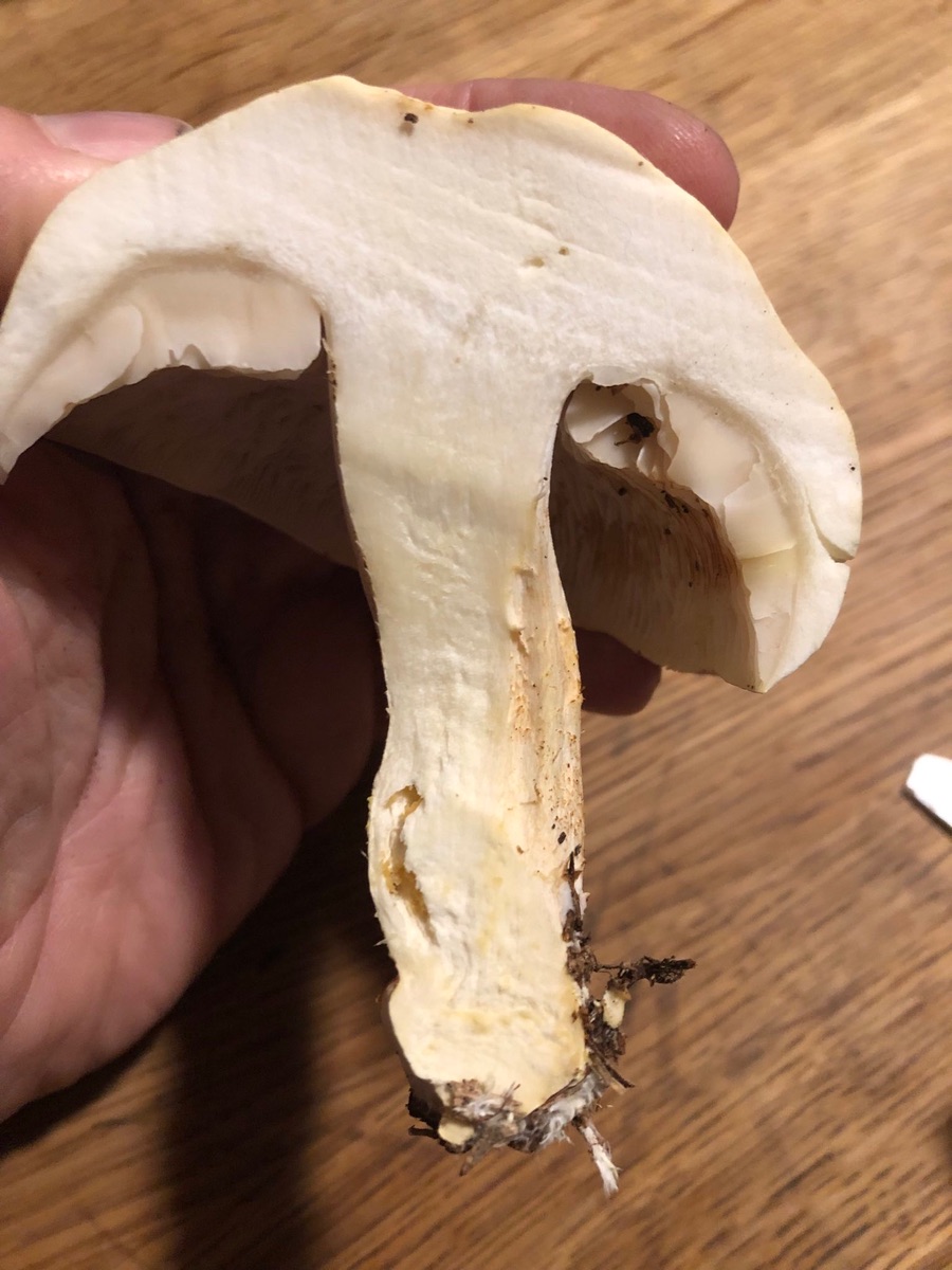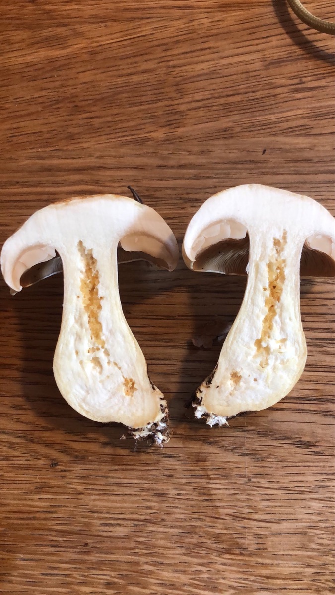 zu Lepista passt die Stielbasis ned so gut mMn. Nicht knollig und ohne den lepista-typischen Myzelfilz. Aber warten wir mal auf den Sporenabwurf…