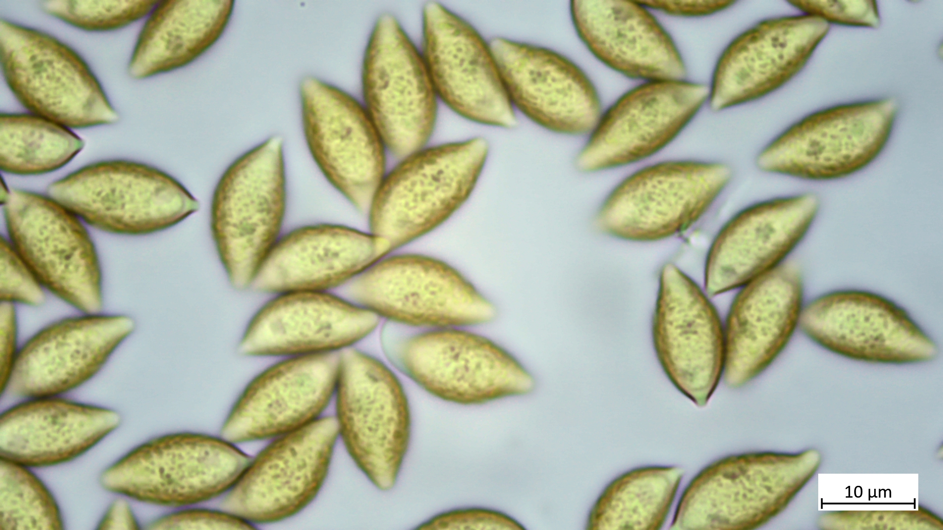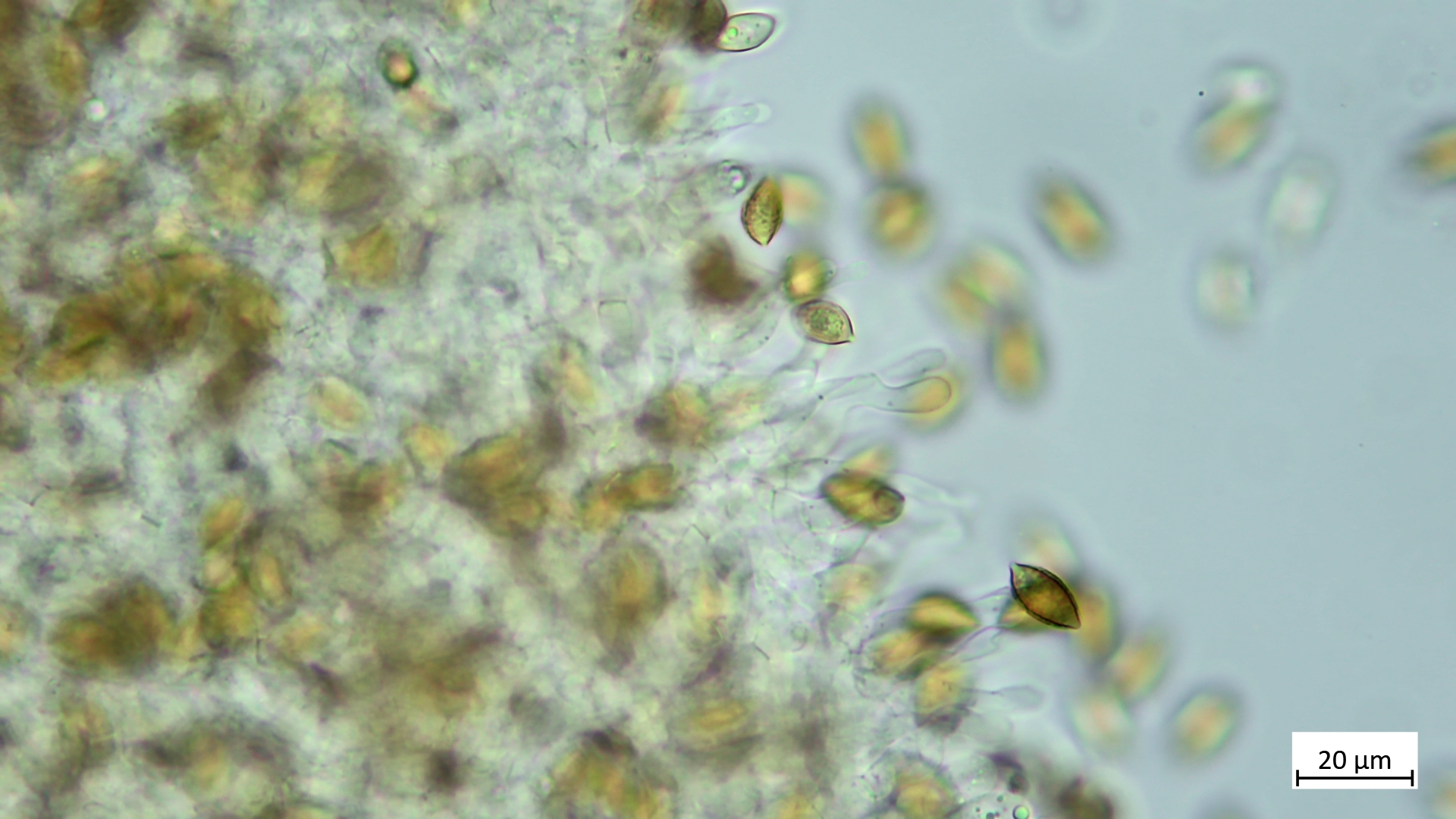 Sporen schmal und lang mit ausgezogenen Enden, deutlich warzig:
