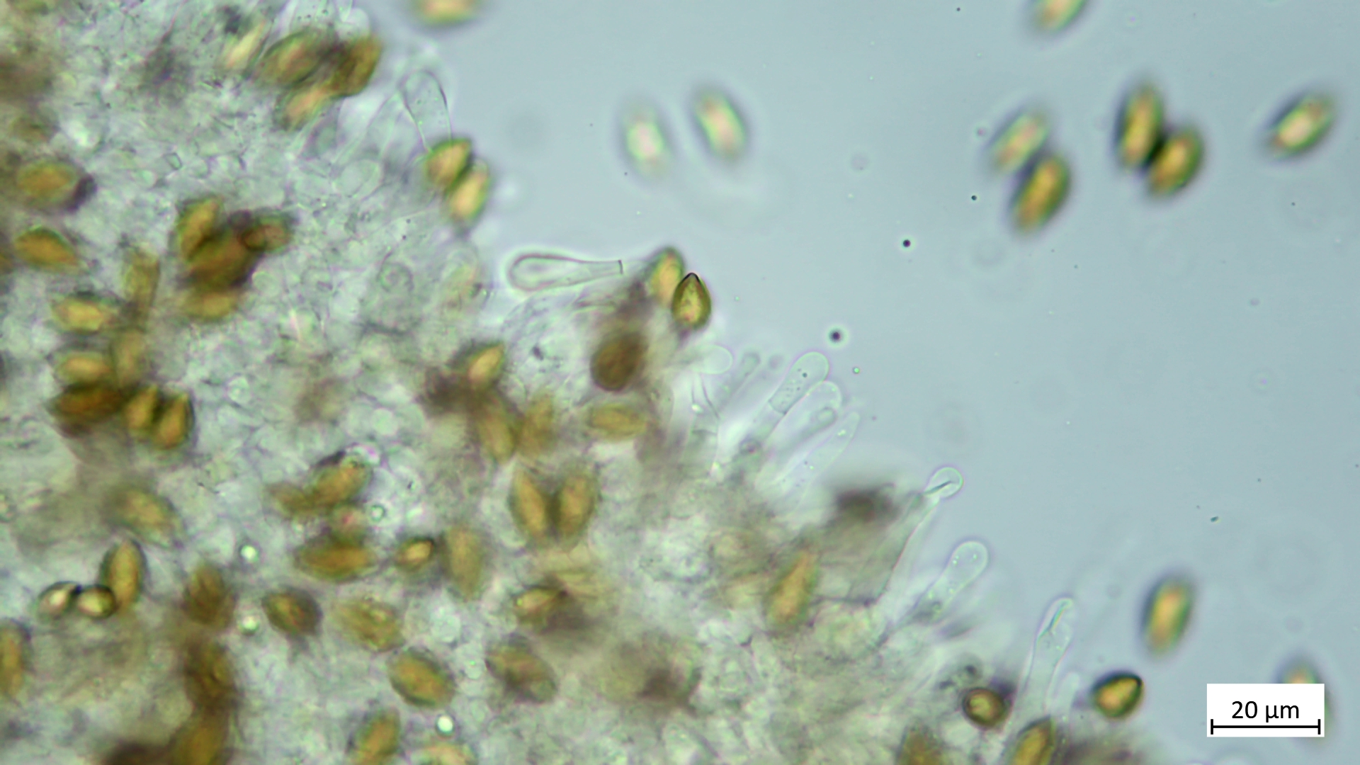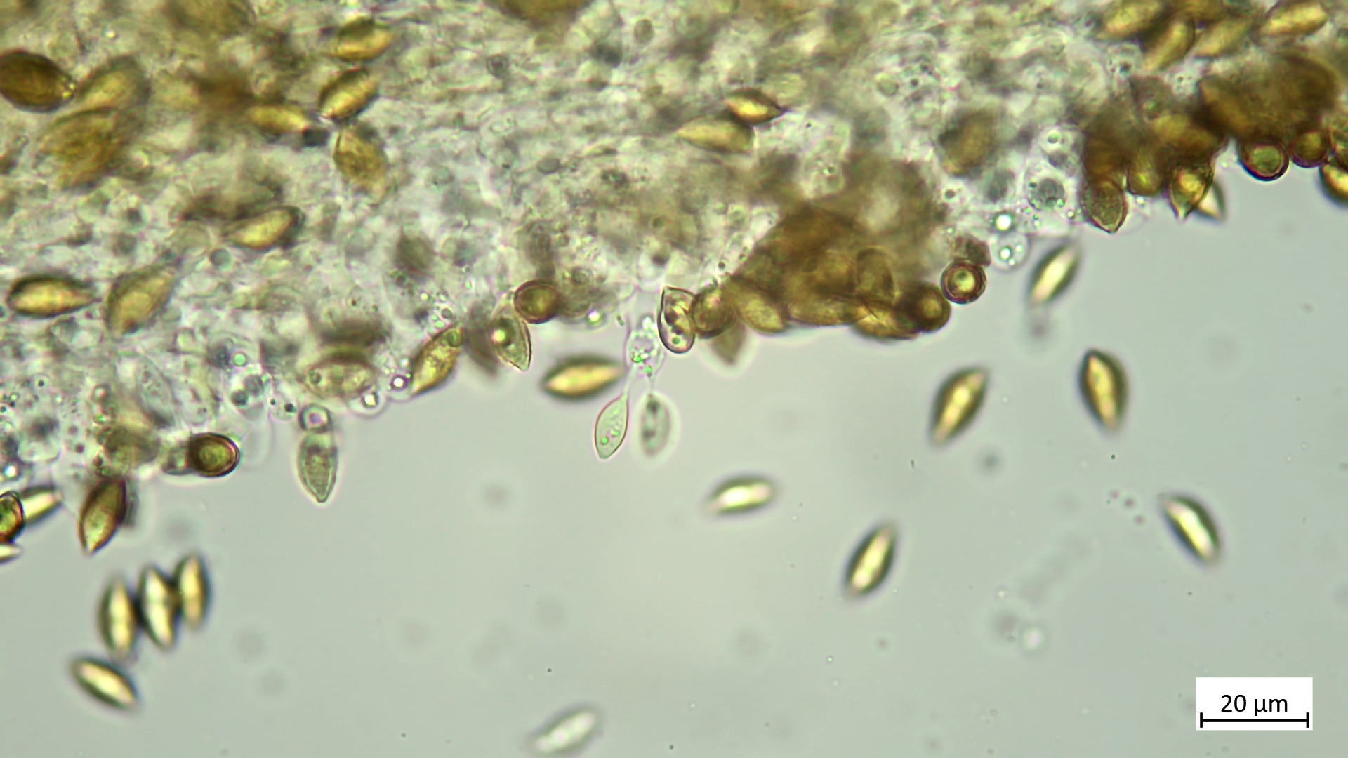 Cheilozystiden schmal, teils clavat bis schon kopfig wirkend, teils unregelmäßig, an der Basis mitunter septiert: