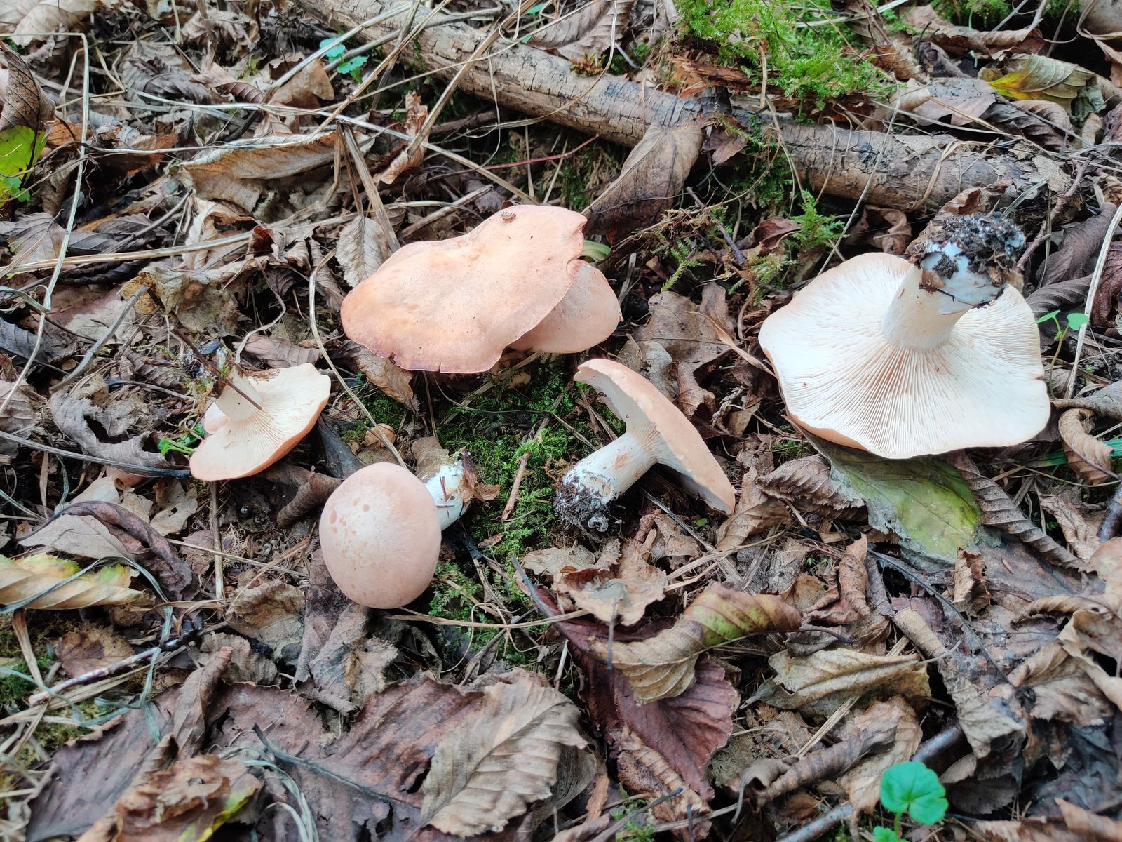 2. Bei dem bin ich mittlerweile auch recht sicher beim Breitblättrigen Rübling (Megacollybia platyphylla). Zuerst stand ich ziemlich auf dem Schlauch und hab aufgrund der hellen Hutfarbe überhaupt nicht an das Breitblatt, sondern eher an Dachpilze gedacht. Naja, nach dem weißen Sporenabwurf sollte das nun passen.