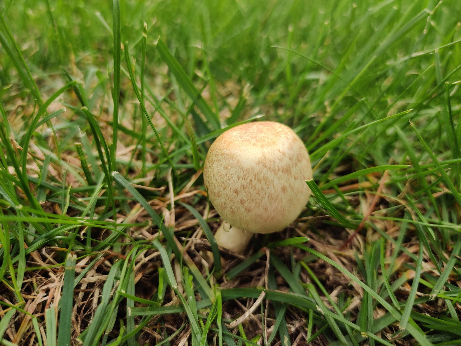 4. als letztes ein Fund aus dem eigenen Garten. Die Pilze wuchsen auf dem Rasen und ich konnte ihr Wachstum über mehrere Tage beobachten. Mit dem Marzipan-Geruch, dem Gilben (vor allem an Stieloberfläche und Hutrand) sowie der geringen Größe (ausgebreiteter Hut ~ 4-5 cm) war ich schnell bei den Zwergchampignons. Am besten scheint mir hier der Agaricus dulcidulus zu passen. Ganz zufrieden bin ich damit aber nicht. Die Schüppchen auf dem Hut schienen mir eher bräunlich statt rot/wein-rot. Und generell fehlt mir bei den Champignons der Überblick, weshalb ich mich auch hier über eure Meinungen freuen würde.