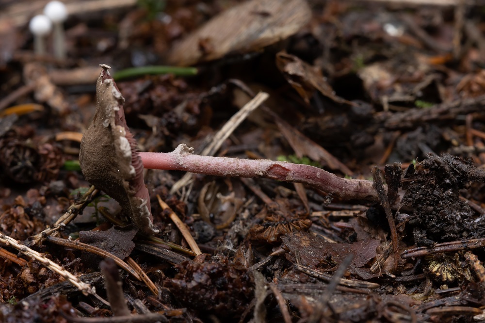 heute konnte ich eine Melanophyllum haematospermum in einem Fichten/Lärchenmischwald (Picea/Larix) finden.