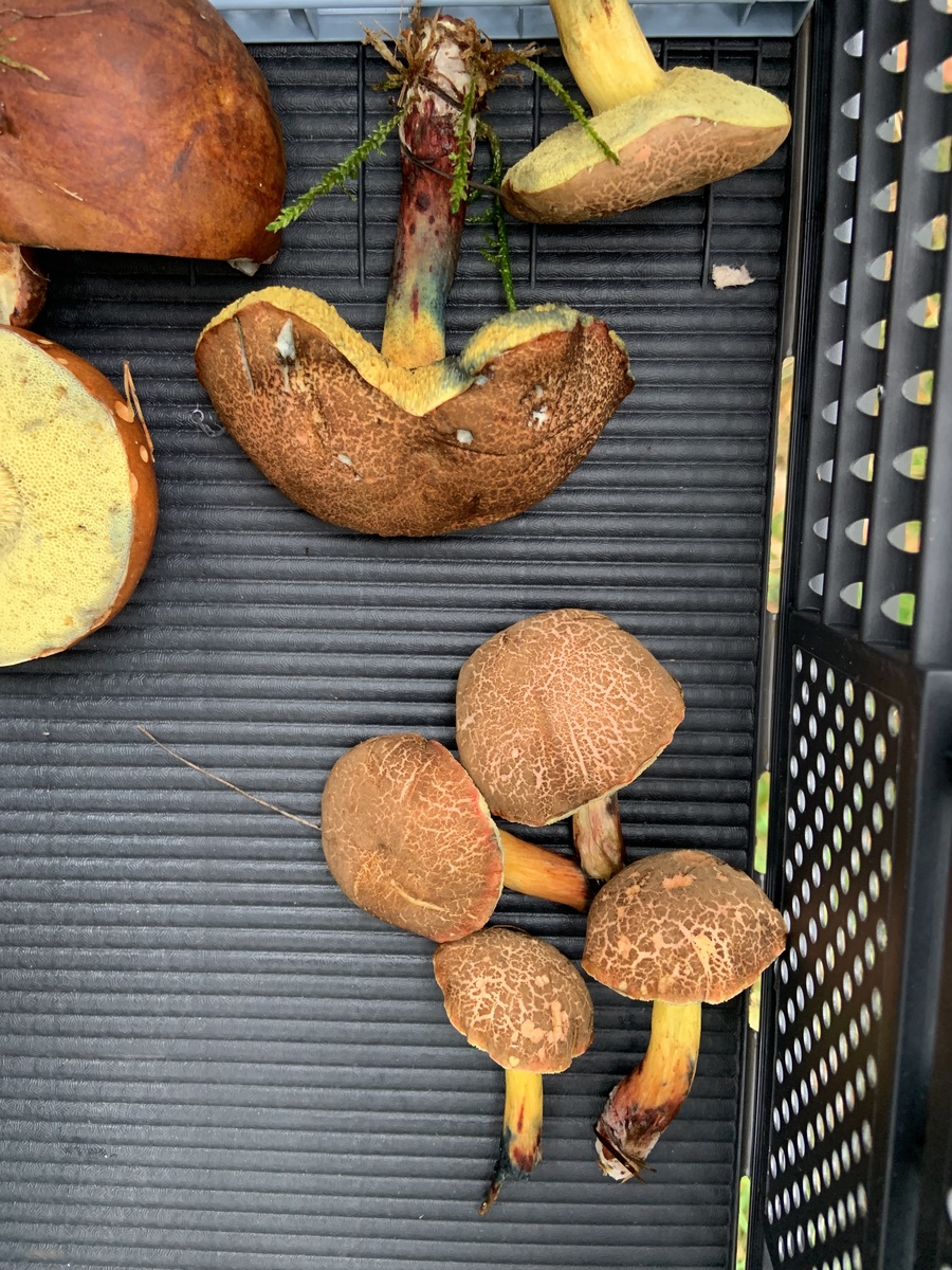 das sieht sehr nach einem Rotfußröhrling (Gattung Xerocomellus) aus. Angesichts der starken blauen Verfärbung, wegen der du vermutlich an den Flocki gedacht hast, kommt hier für mich am ehesten X. cisalpinus in Frage. Ein Schnittbild mit Foto direkt nach Anschnitt und 20 Minuten nach Anschnitt wäre sehr hilfreich.