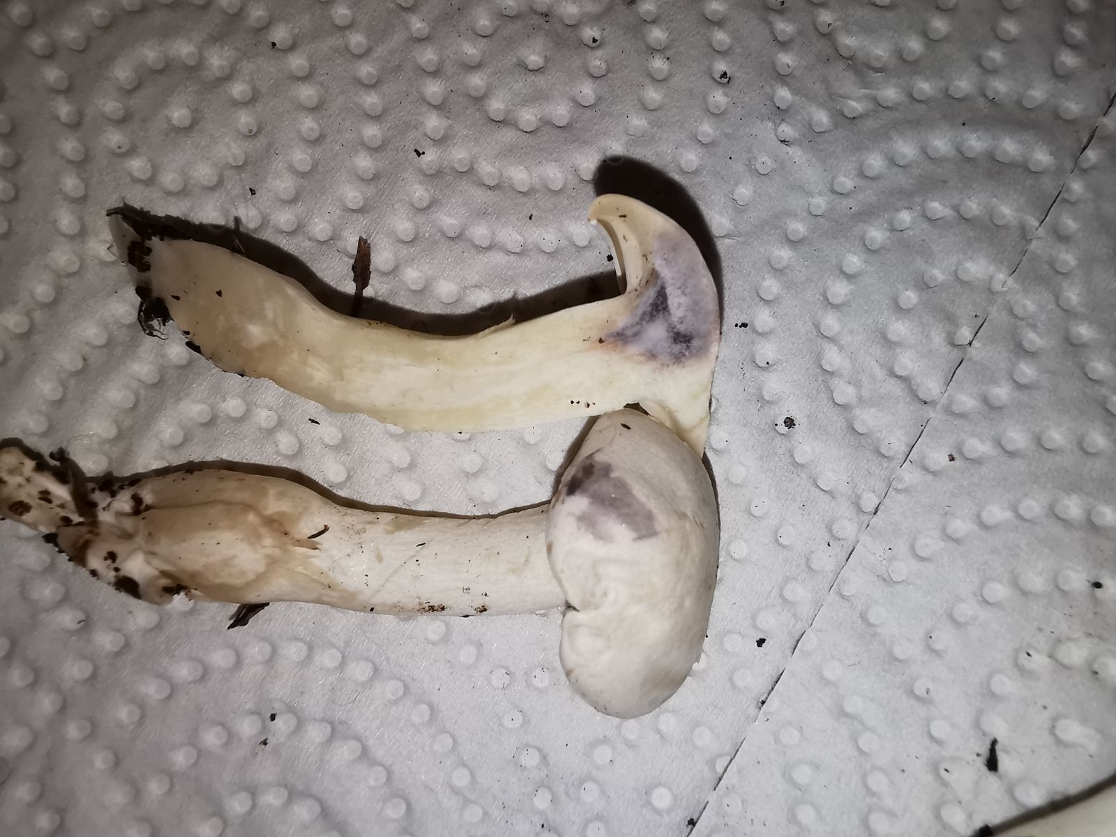 Da ich jetzt auch ein paar Chemikalien zur Verfügung habe, wollte ich diese natürlich auch mal testen. Heute habe ich den den Weissen Büschelrasling - Leucocybe connata gefunden und mir ist in den Sinn gekommen, dass man den mit Eisensulfat testen kann. Also wollte ich das mal ausprobieren und ich denke es hat auch funktioniert. Das Eisensulfat wurde auf L. connata violettlich, was, wie ich annehme passen sollte, oder? Zum Test habe ich das Eisensulfat auch noch auf einem anderen Pilz, in dem Fall müsste es der Safranrote Schüppling - Pholiota astragalina gewesen sein, aufgetragen, um zu sehen, was passiert. Dort wurde es dann ganz dunkelblau bis schwarz. Hat das auch eine Bedeutung? Passiert das bei allen Pilzen, die nicht mit Eisensulfat reagieren, oder kann es hier je nach Pilz ganz unterschiedliche Farben geben?
