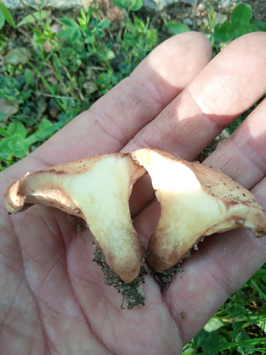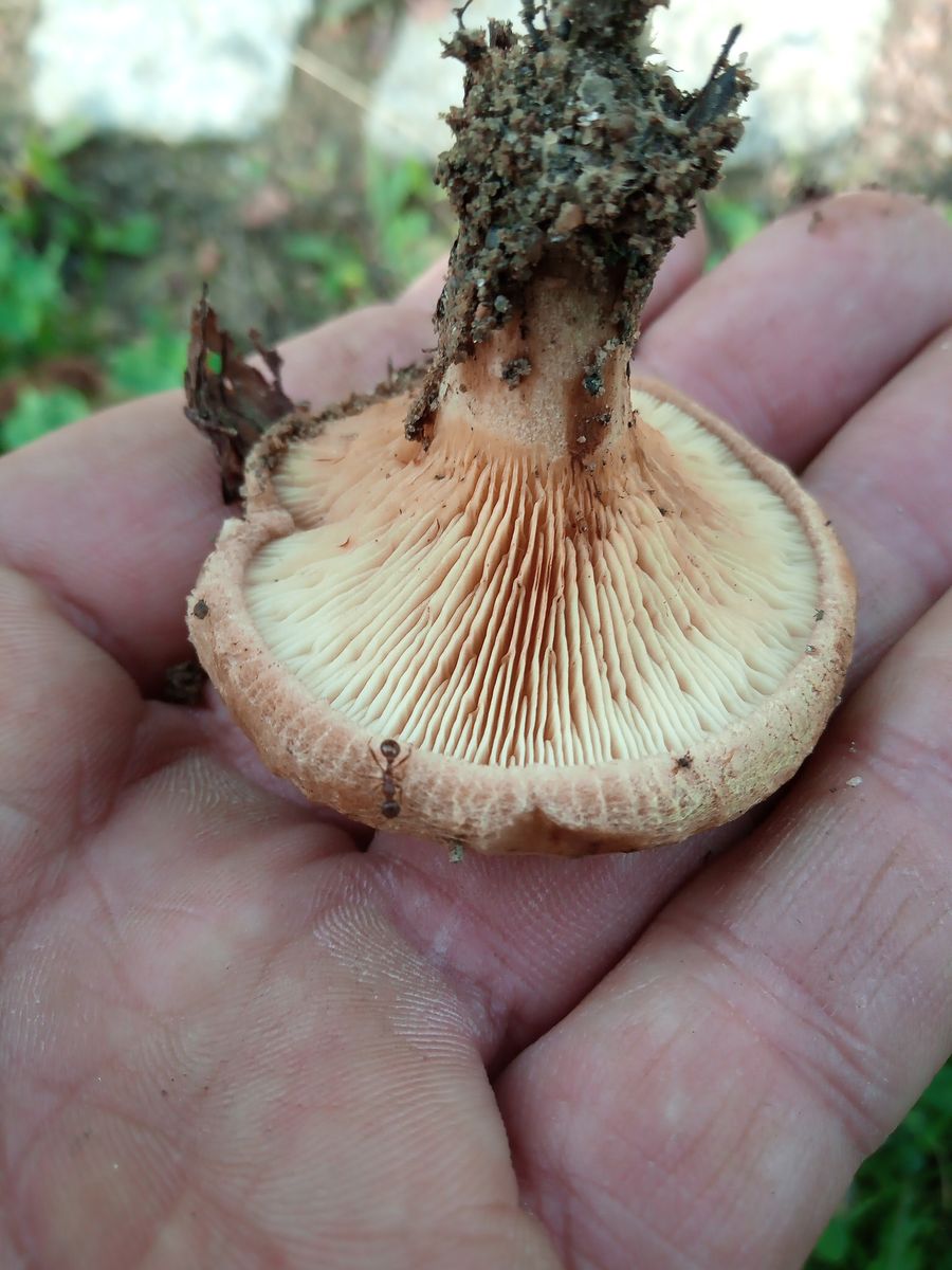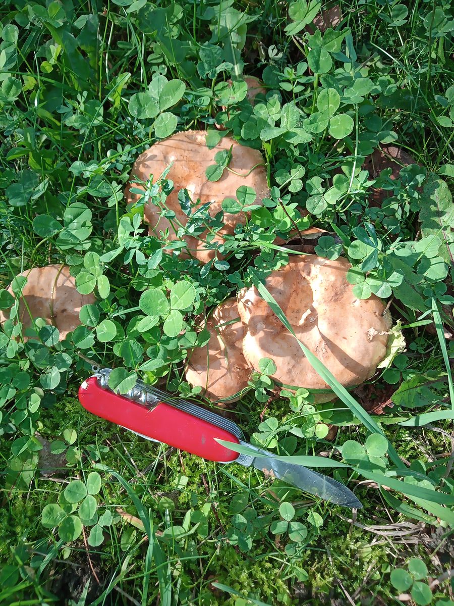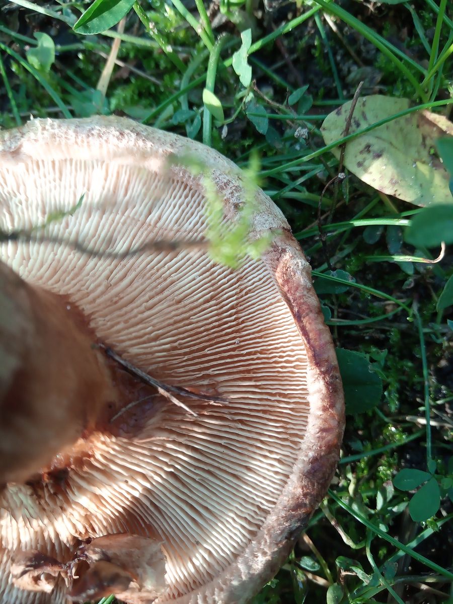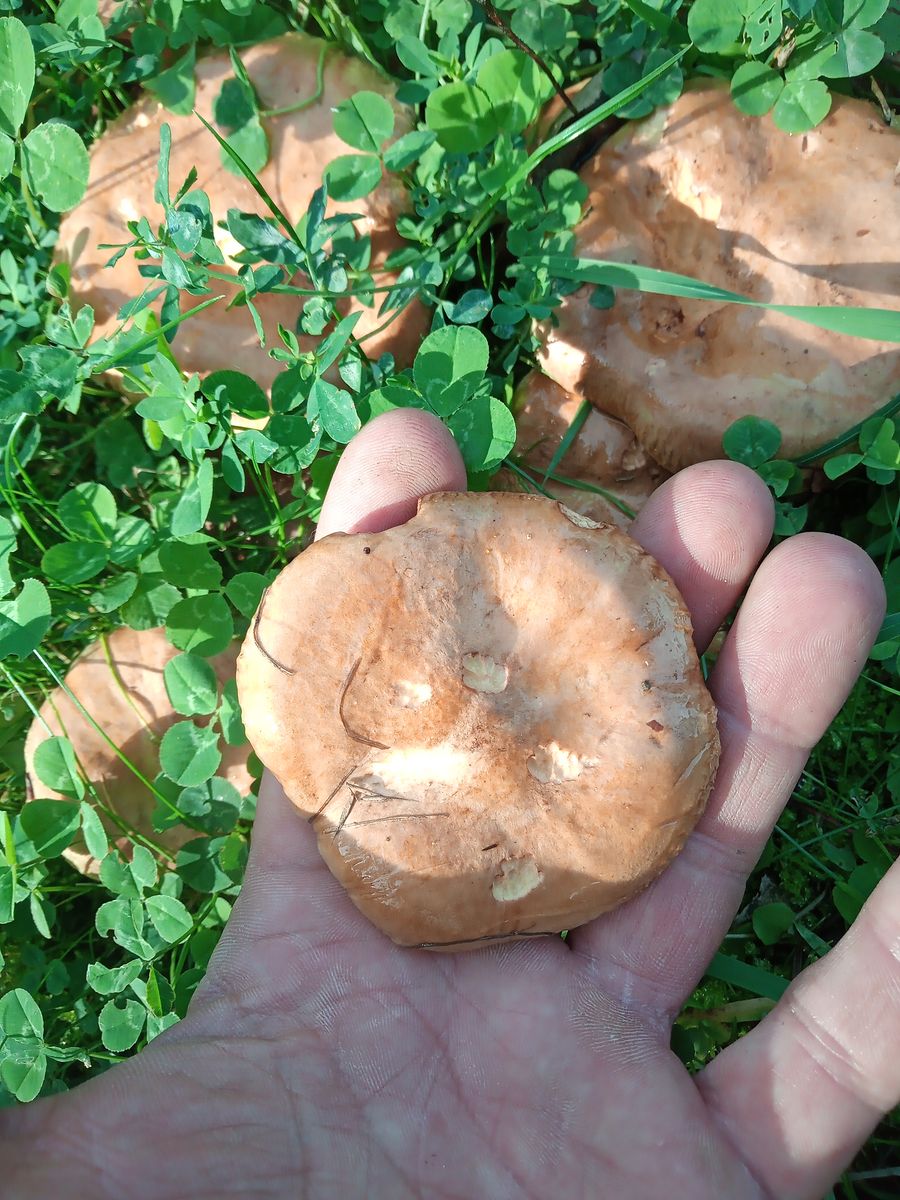 Hey, die Pilz waren zu mehreren auf der Wiese gewachsen. Der Geruch ist aufdringlich fruchtig, zitronig. Der Hut ist schmierig, leicht schleimig und zieht etwas Fäden. Lamellen gegabelt.