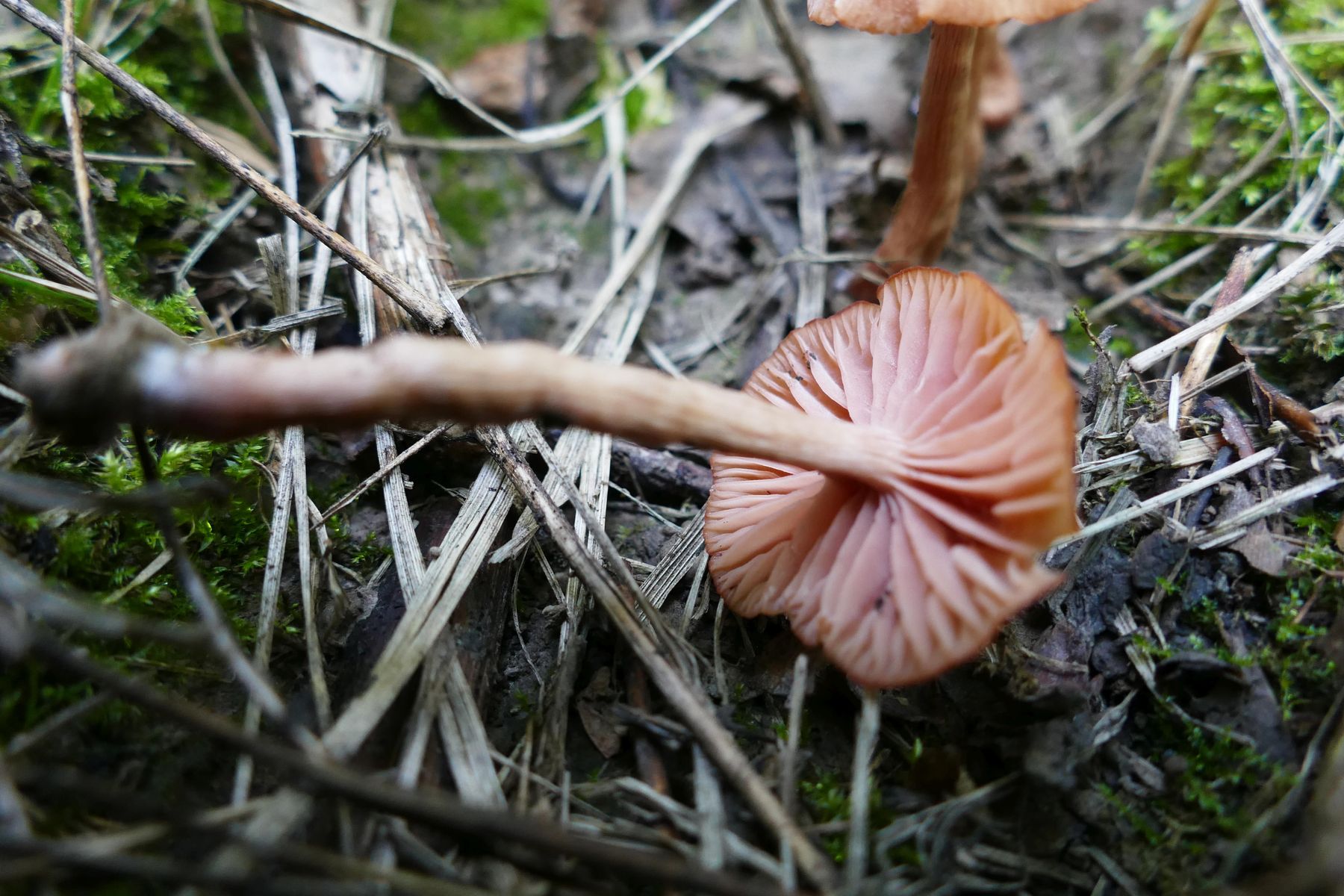 Ich vergleiche hier mit Laccaria (laccata var.) pallidifolia / tetraspora, dem Rötlichen Blassblättrigen Lacktrichterling (Danke Pablo für die Richtigstellung!).