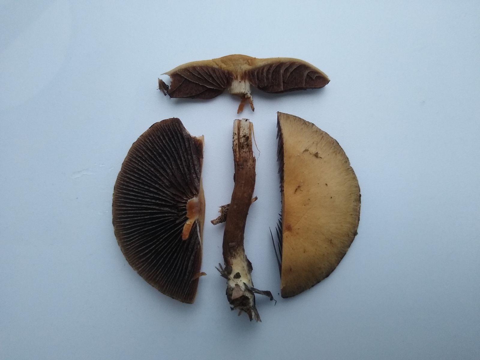 Gelbliche Pleurozystiden, die bei Pholiota auftreten sollen, konnte ich aber nicht entdecken.