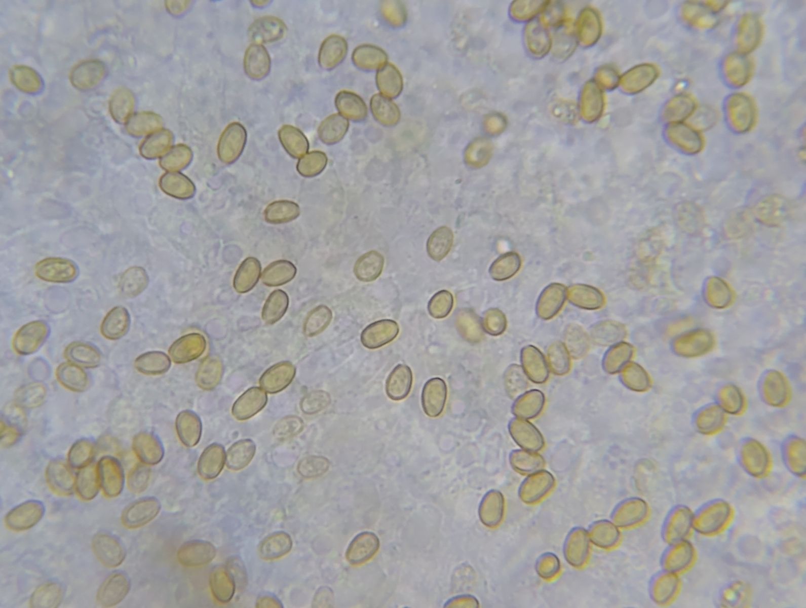 Die Sporen selbst sind in etwa zitronenförmig, dickwandig, braun mit Keimporus und messen um 9,5 x 6 µm.