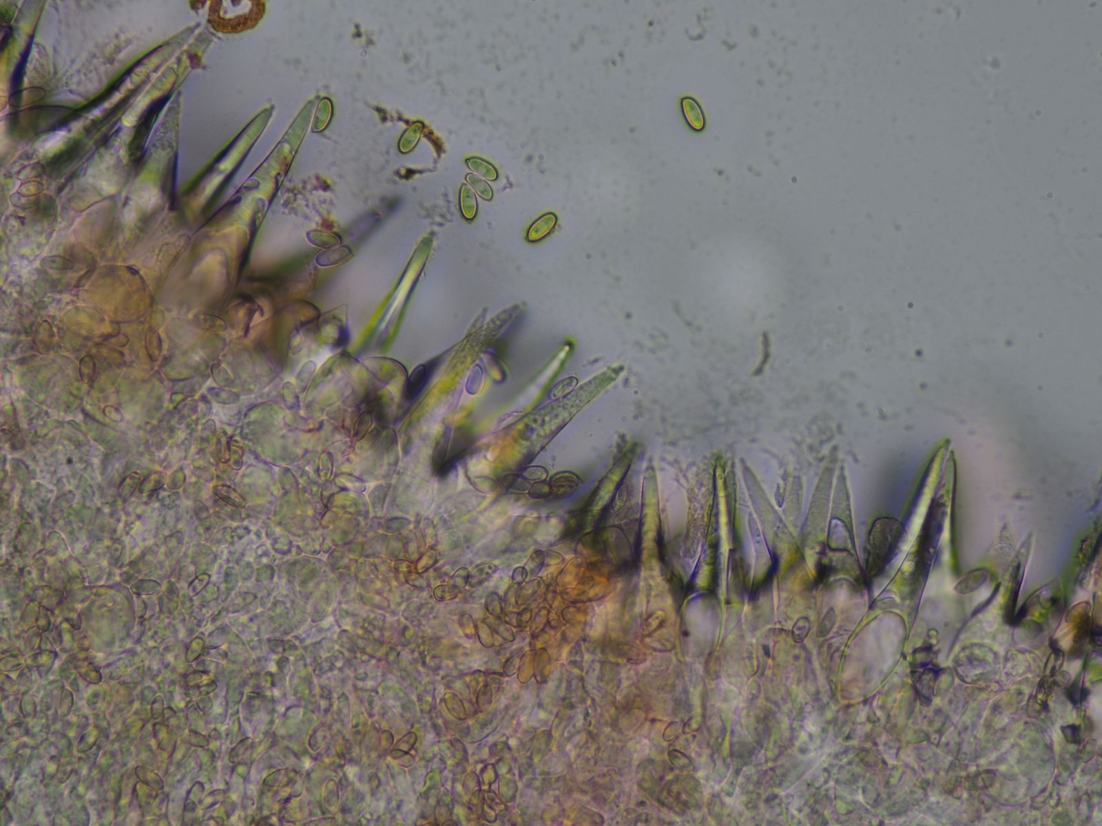 Bild 9f Kopfige Cheilozystiden in Luftblase, deshalb durch Totalreflexion schöner Kontrast