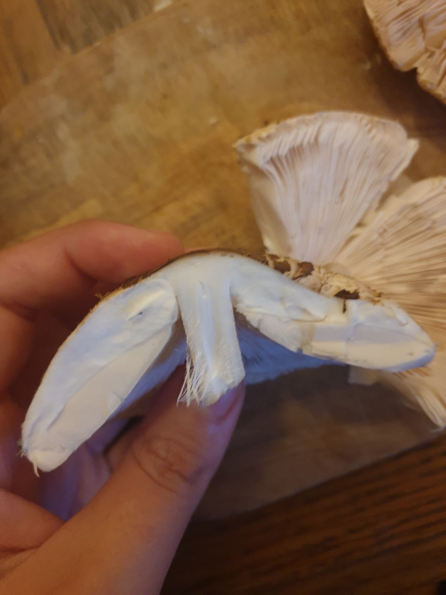 Unter einer Lärche habe ich drei Riesenschirmpilze gefunden. Ich bin mir sehr sicher, dass es sich dabei um die "gemeine" essbare Art handelt, da alle typischen Merkmale vorhanden sind (Genannerter Stiel, verschiebbarer Ring, Knolle an der Stielbasis, die Schuppen am Hut). Allerdings riecht er kaum, oder sogar etwas unangenehm. Das hat mich stutzig gemacht und ich traue mich nicht, ihn zuzubereiten, denn die Lärche hatte ziemlich viele Robinien als Nachbarn. Bin ich paranoid