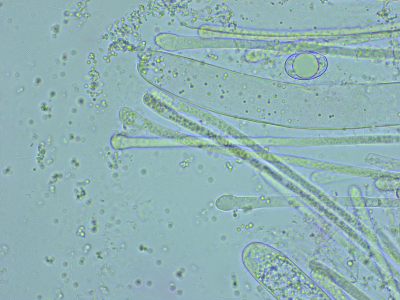Im oberen Stieldrittel gab es zahlreiche Kaulozystiden.
