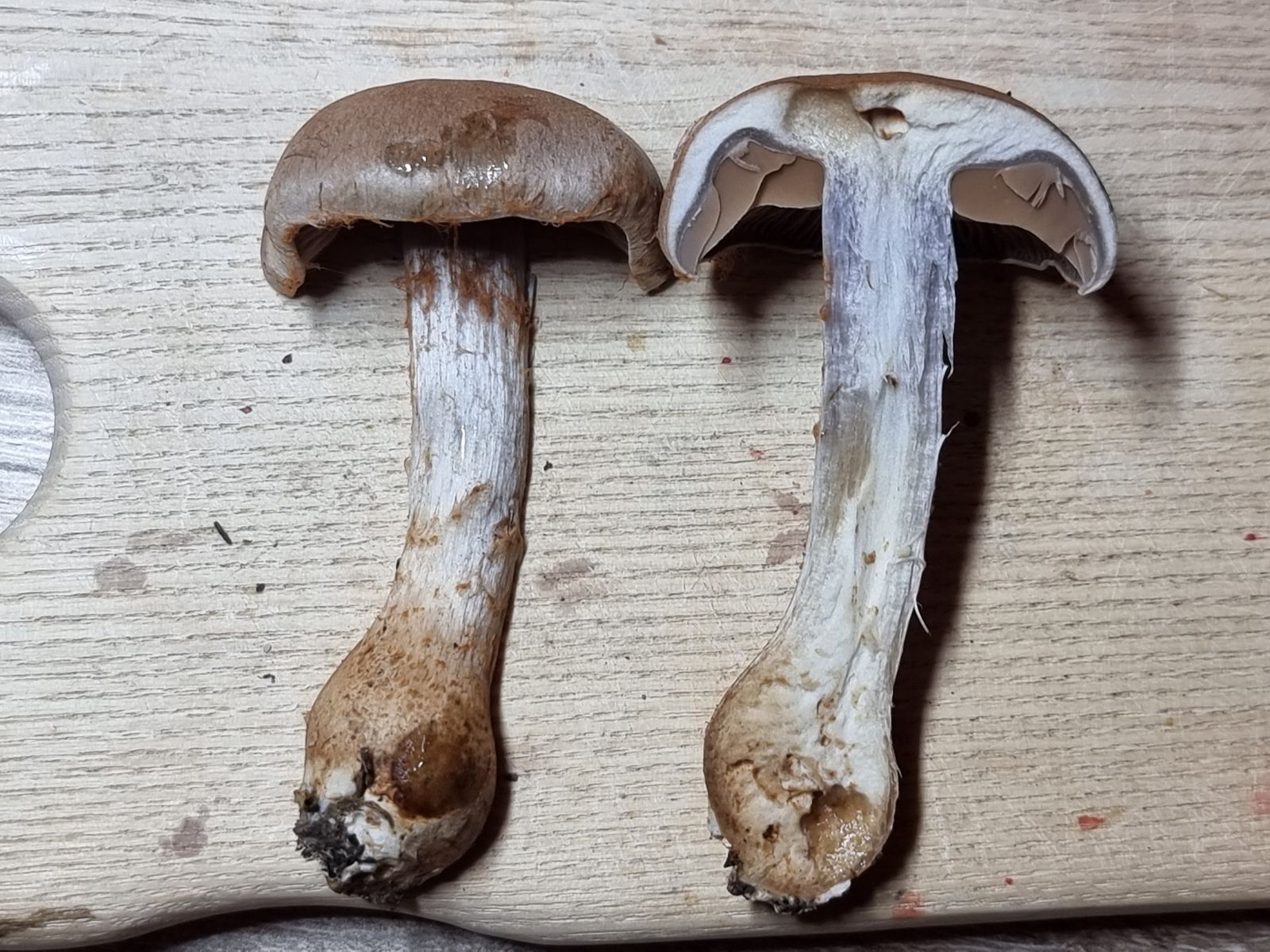 Mit der Bestimmung hatte ich wie erwartet Mühe. Am Ende kam ich auf Cortinarius lebretonii, vor allem wegen dieser auffallenden ockergelben Gürtel.