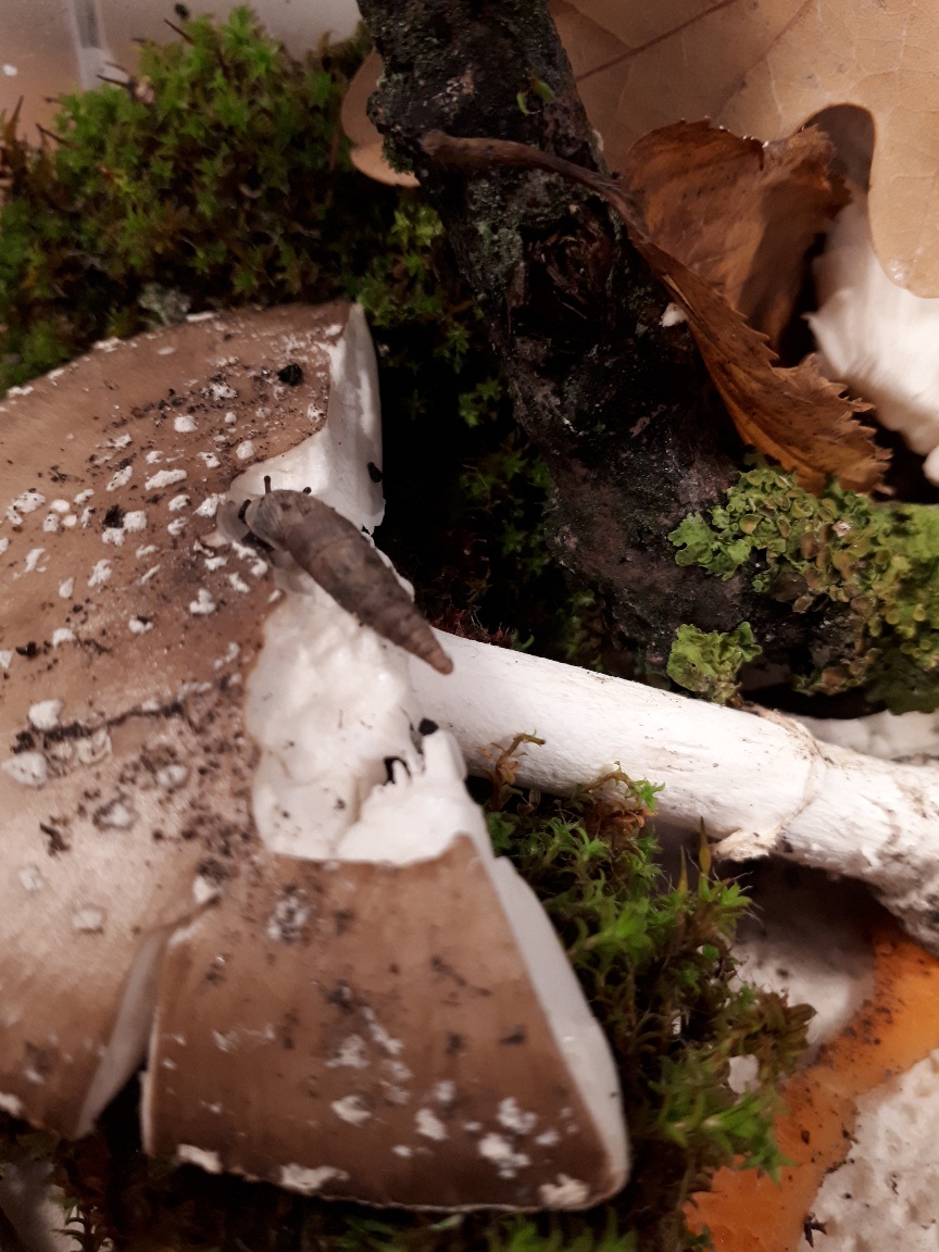 Auf dem 2. Bild sieht man noch ein kleines Rudel Perlpilze heranwachsen. Die esse ich allerdings nicht. Die bekommen meine vielen Schnecken, die ich in Terrarien halte.