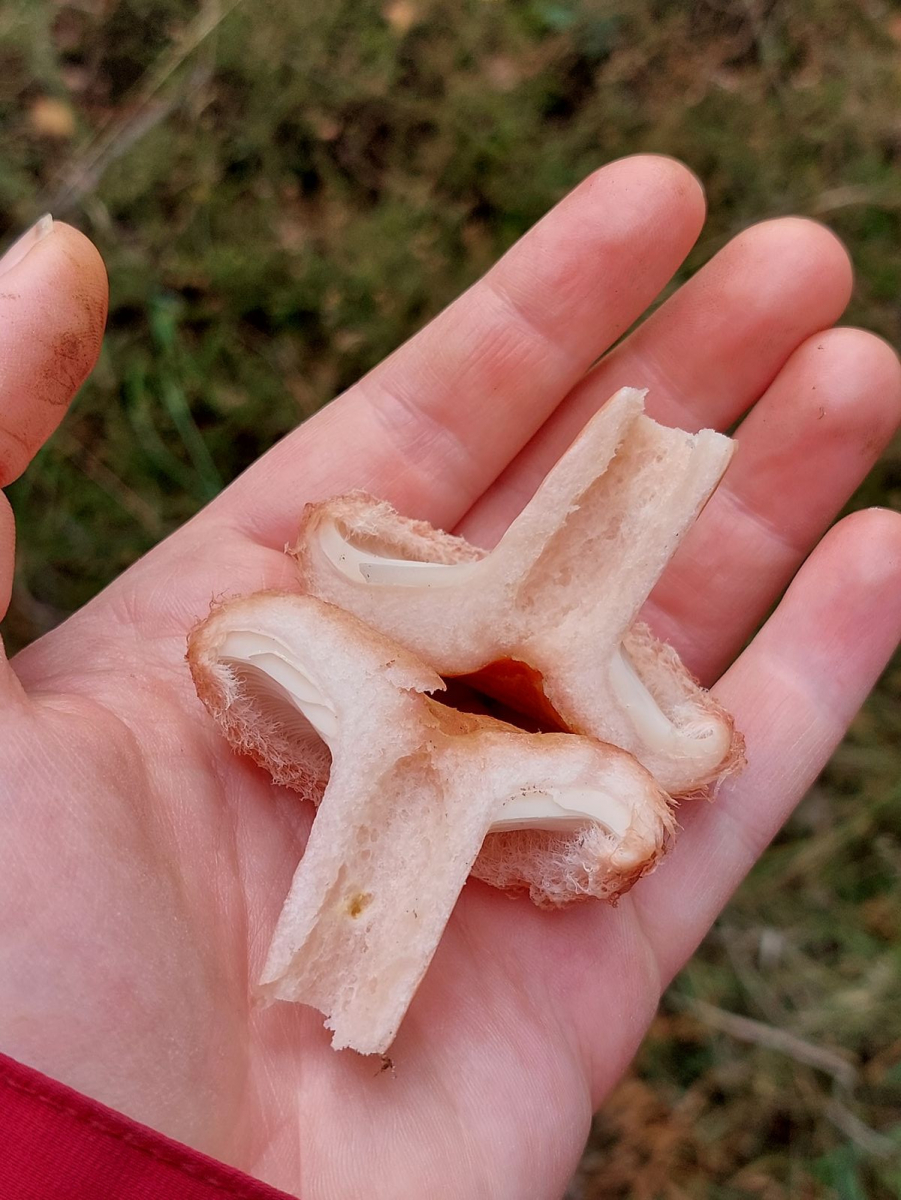 Momentan kann man mich gar nicht mehr aus dem Wald bekommen, so oft und gerne bin ich gerade unterwegs. Neben den erhofften Speisepilzen bin ich heute auch diesem Pilz begegnet. Zuerst dachte ich "Hurra, ein Reizker!" wegen der Grübchen am Stiel, als ich ihn dann aber entnommen habe, begann die Verwirrung. Der Pilz hat (wie ihr seht) eine fast schon flauschige Krempe, Milch tritt keine aus. Die Bilder werden ihm nicht gerecht, er ging deutlich mehr ins rosane, ähnlich dem Gefieder eines Flamingos. Geruch ist unauffällig, gefunden in einem sehr gut durchmischtem Waldstück, in der Nähe standen meine ich Birken und Kiefern.