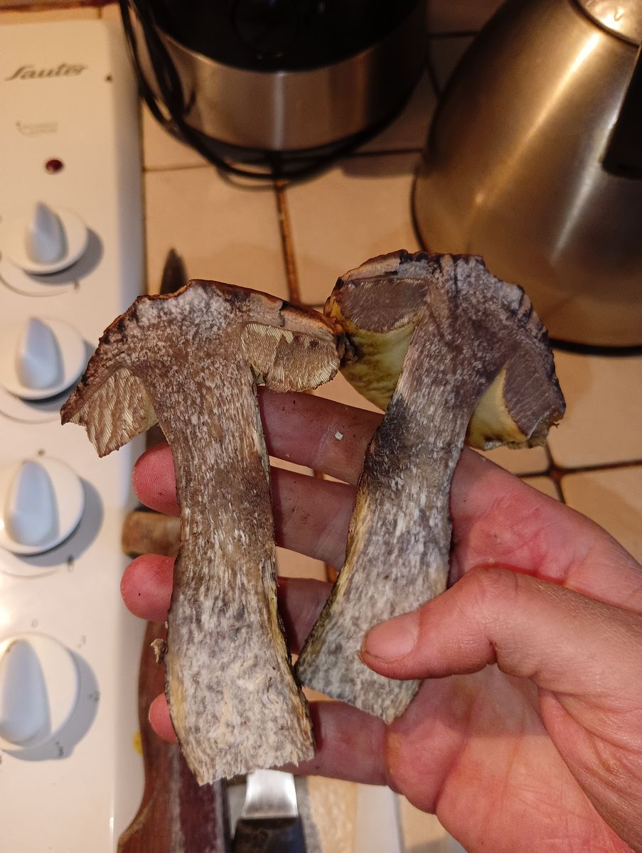 Aber Vorsicht! Ähnlich aussehen und verfärben kann auch der Gelbporige Raufuß (Leccinum crocipodium).